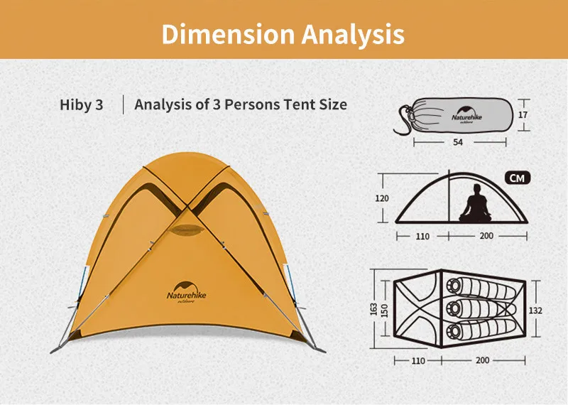 Hiby 3 размер палатки: (200 110 )x 132x120 см (длина * ширина * высота см)