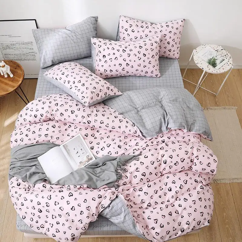 AB сбоку постельное белье из чистого хлопка со светящимся в клетку и полоску красное сердце узоры для простыни на кровать пододеяльник наволочка 3/4 шт