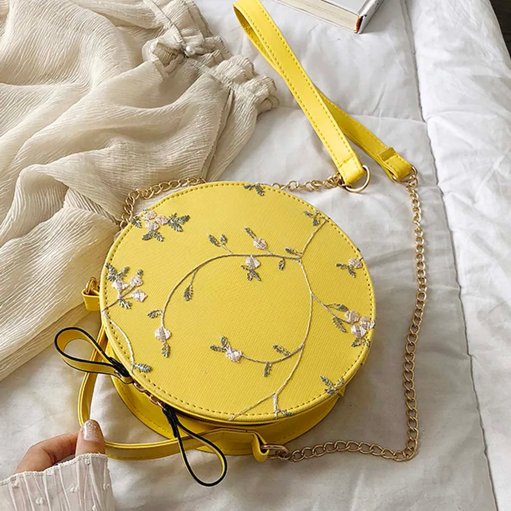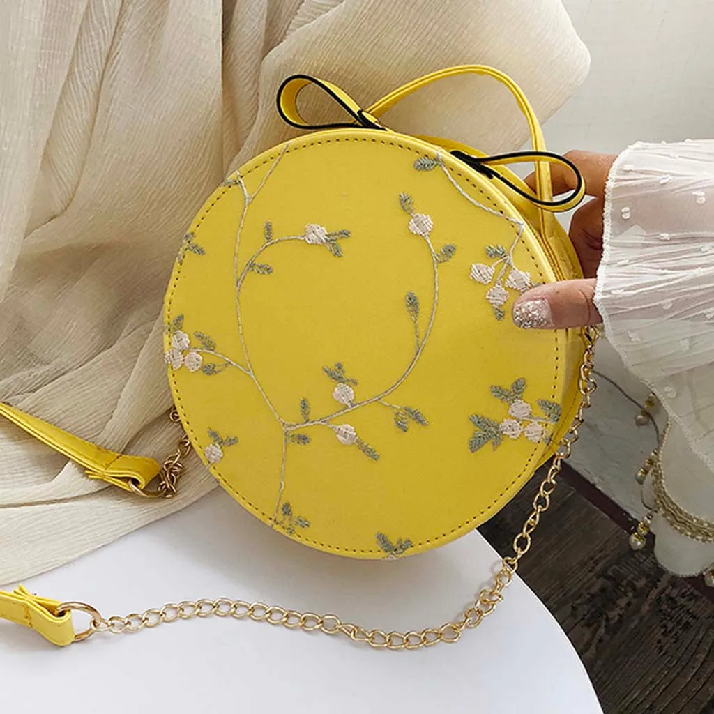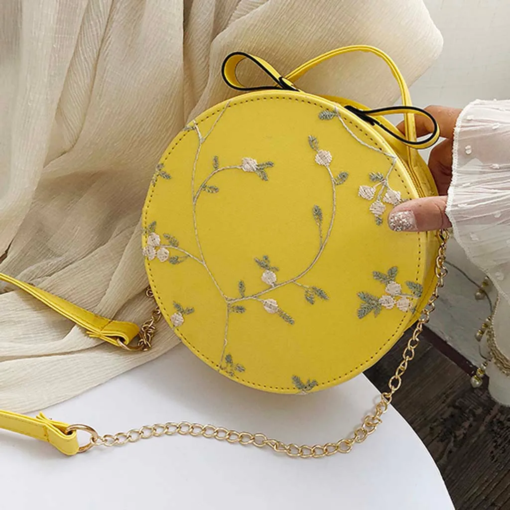 Женская модная кружевная сумка через плечо, одноцветная маленькая круглая сумка