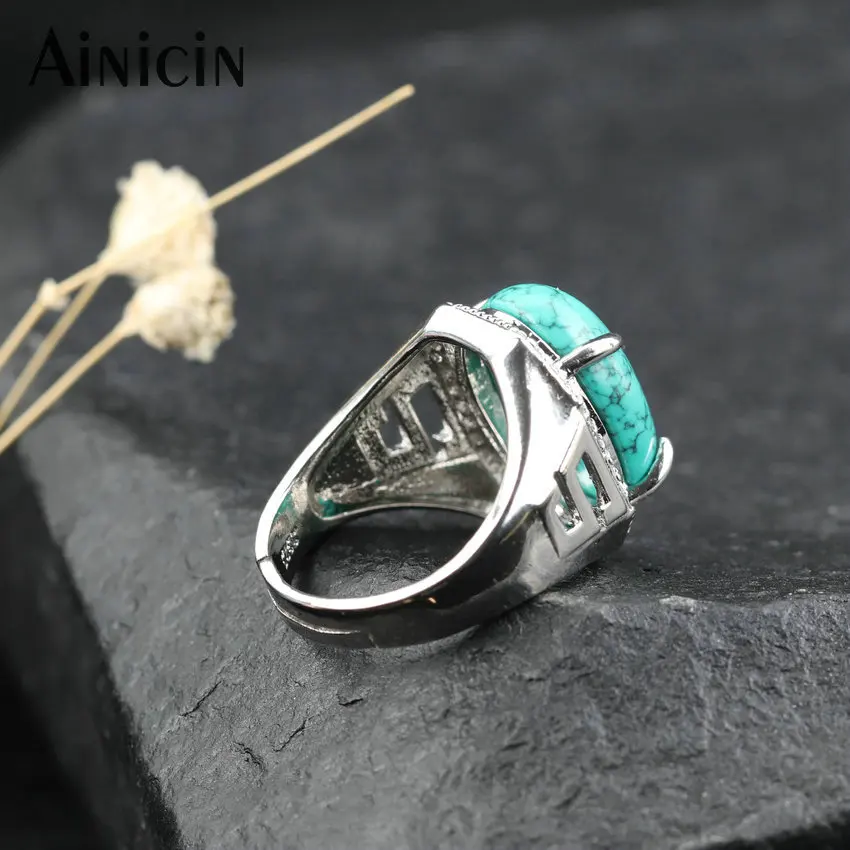 Модные мужские ювелирные изделия натуральный синий Turuqoise широкий Регулируемый кольцо 13x18 мм кабошоны горный хрусталь установка кольца на палец