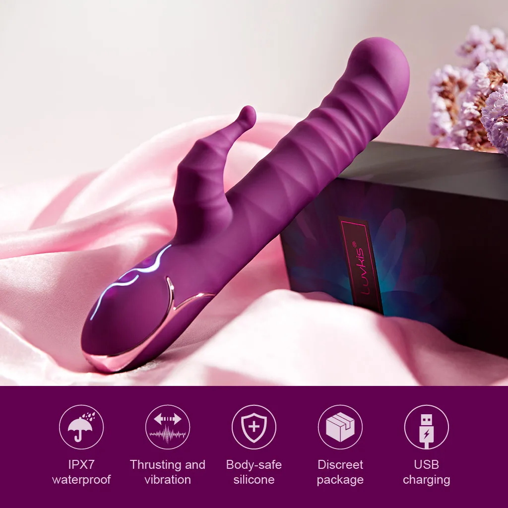 Вибратор Luvkis thrusting G-spot предназначен для обеспечения нового сексуального опыта для женщин изнутри. Уникальная Тяговая часть работает как настоящий мужчина, чтобы вставить во влагалище и ударить каждый нерв, заканчивая 3 различными скоростями вращения. В то же время, игрушка имеет способность стимулировать ваш клитор с помощью щелкающего кроличьего наконечника, который предлагает 7 вибрирующих частот в общей сложности.