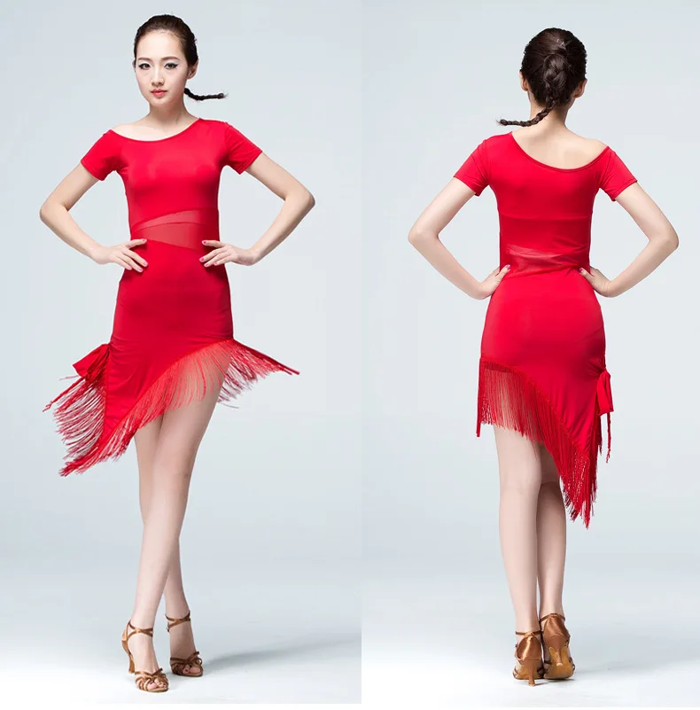 Женская одежда для латиноамериканских танцев, тренировочный костюм с кисточками для взрослых, летняя одежда для латиноамериканских бальных танцев, танго, сальсы, костюм для румбы, Одежда для танцев с коротким рукавом