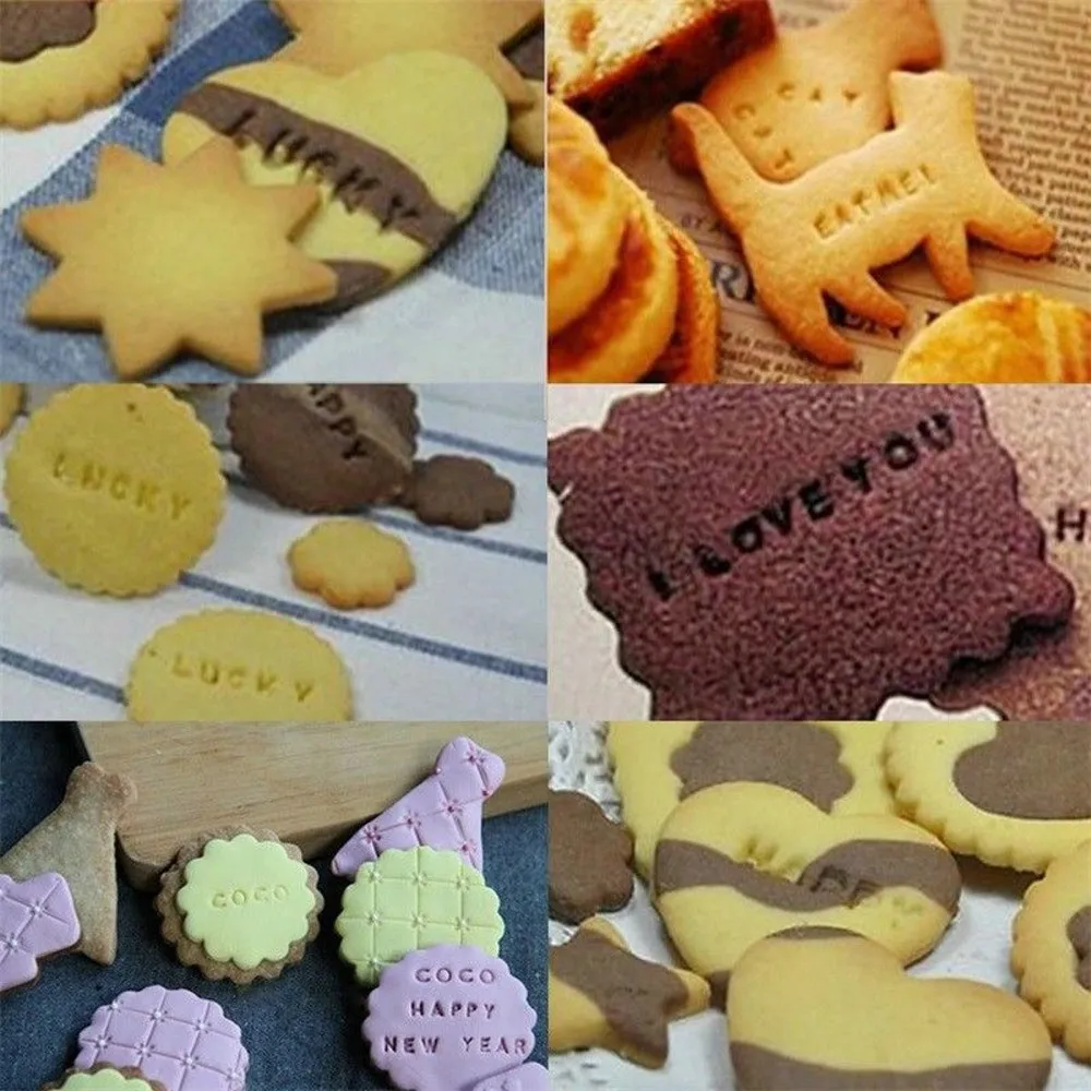 Печенья прессформы на английском языке Буквенно-цифровое уплотнение печенья плесень печать марок Инструменты для выпечки