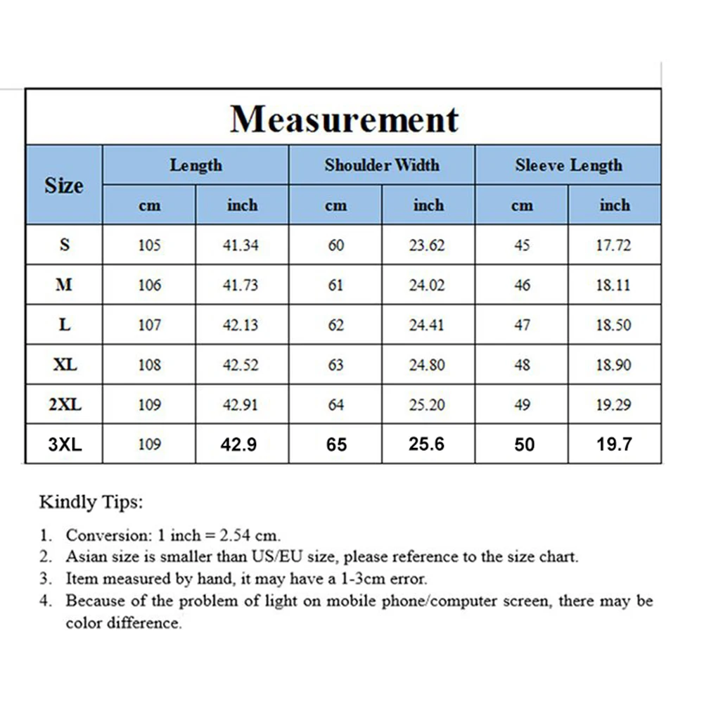 [Наш Размер XXL] Ширина плеч: 64 см/25,2 дюйма, длина рукава: 49 см/19,3 дюйма, длина: 109 см/42,9 дюйма (прибл.)