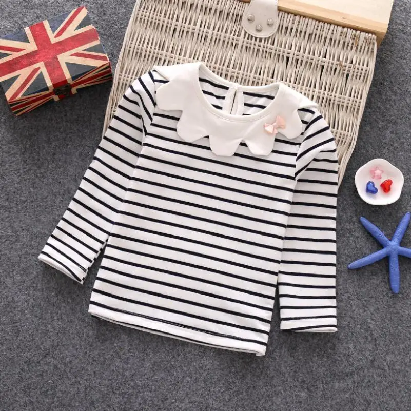 Весенне-осенняя школьная футболка для маленьких девочек топы, детские футболки рубашки для девочек белая блузка с длинными рукавами для девочек футболки для малышей, JW8293