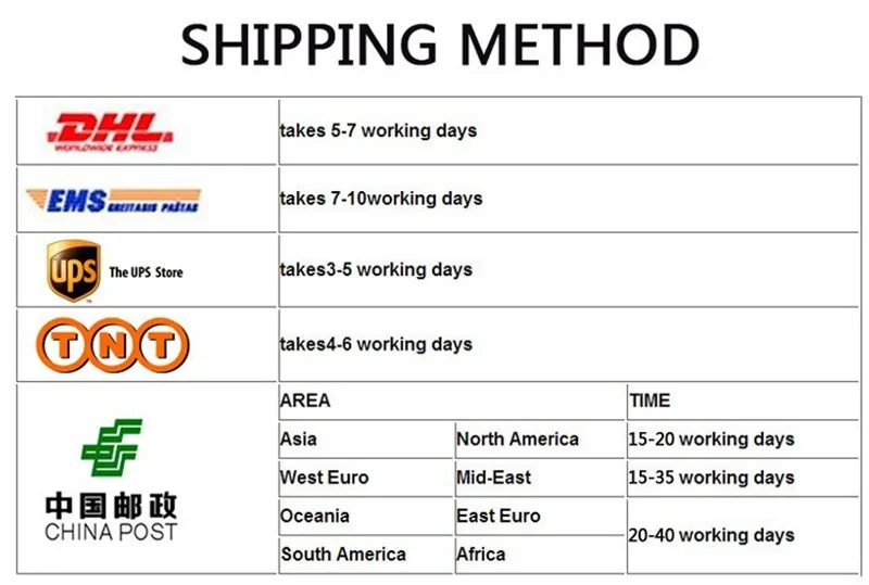 Доставка в другие страны: Как правило, ваш заказ будет отправлен из Китая через Почта Китая воздушную почту в течение 3-7 рабочих дней. Это около 15-60 дней для большинства стран, некоторые страны могут занять больше дней, таких как Бразилия, Аргентина. Если дата доставки приближается, но вы не получили товар, вы можете связаться с нами, чтобы продлить дату доставки. Возврат: Если вы получили дефектный или неправильный товар, или любые другие проблемы, пожалуйста, сначала свяжитесь с нами, вы делаете что-либо. Мы предложим вам удовлетворительное решение. Обратите внимание на фактический цвет. Это может немного отличаться от изображения из-за различных мониторов. Отзывы: Пожалуйста, дайте мне 5 звезд и оставьте положительные отзывы, если вы удовлетворены нашими товарами и услугами, если есть какие-либо проблемы. Пожалуйста, свяжитесь с нами, прежде чем оставлять отзывы.