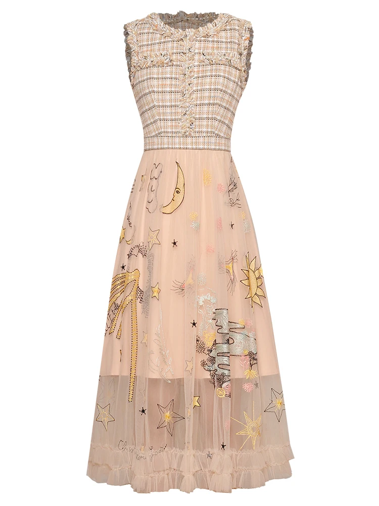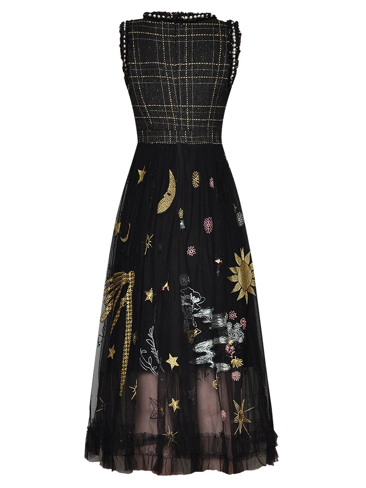 Наименование товара: платье средней длины с круглым вырезом, без рукавов, украшенное бусинами