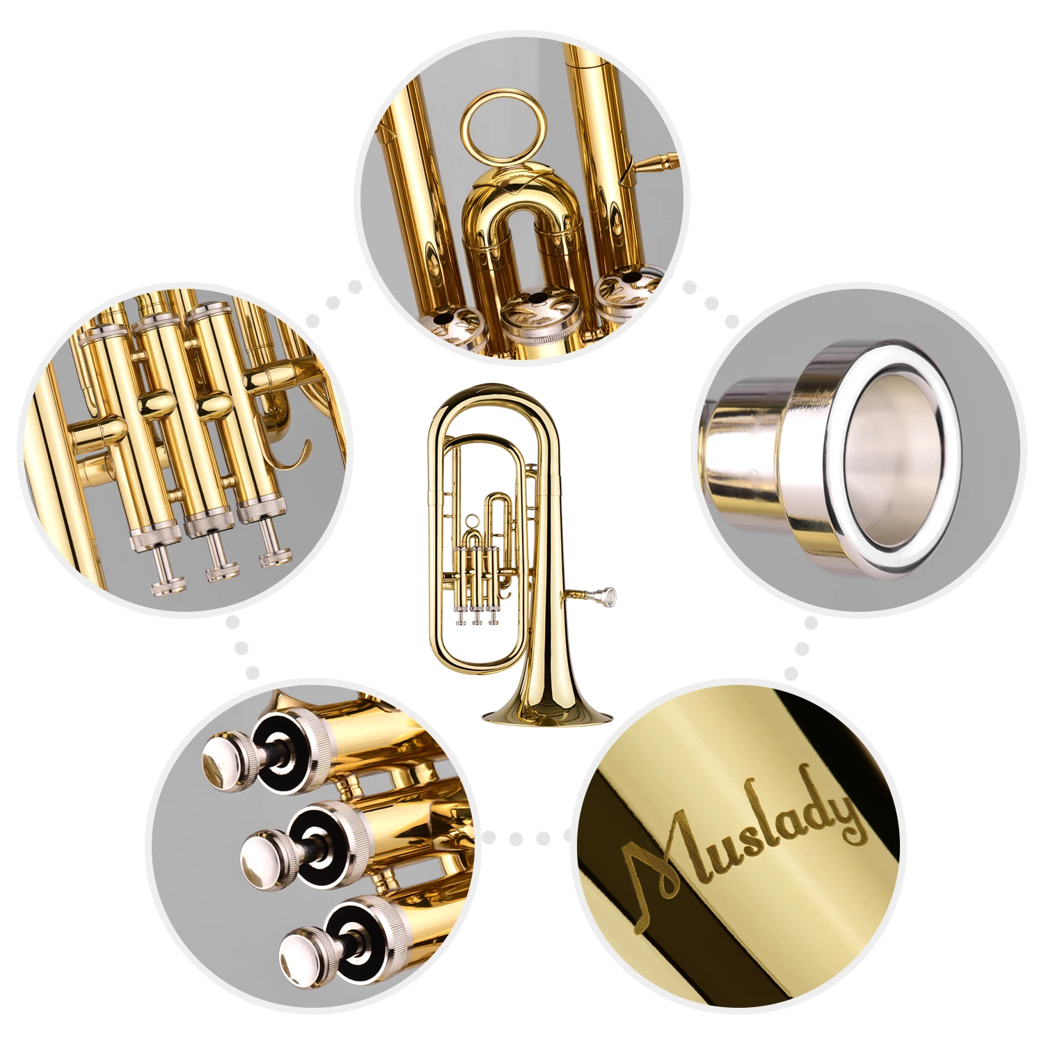 Высококачественный Bb baritone, популярный с латунными полосками, предлагает теплый, резонансный и четкий тон.
