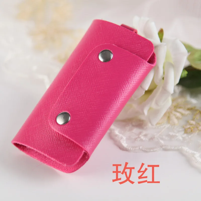 1 PC Solid Color Portable Pu Leather Housekeeper Holders Keychain Key Holder Bag Case Unisex Wallet Cover Simple Storage Bag