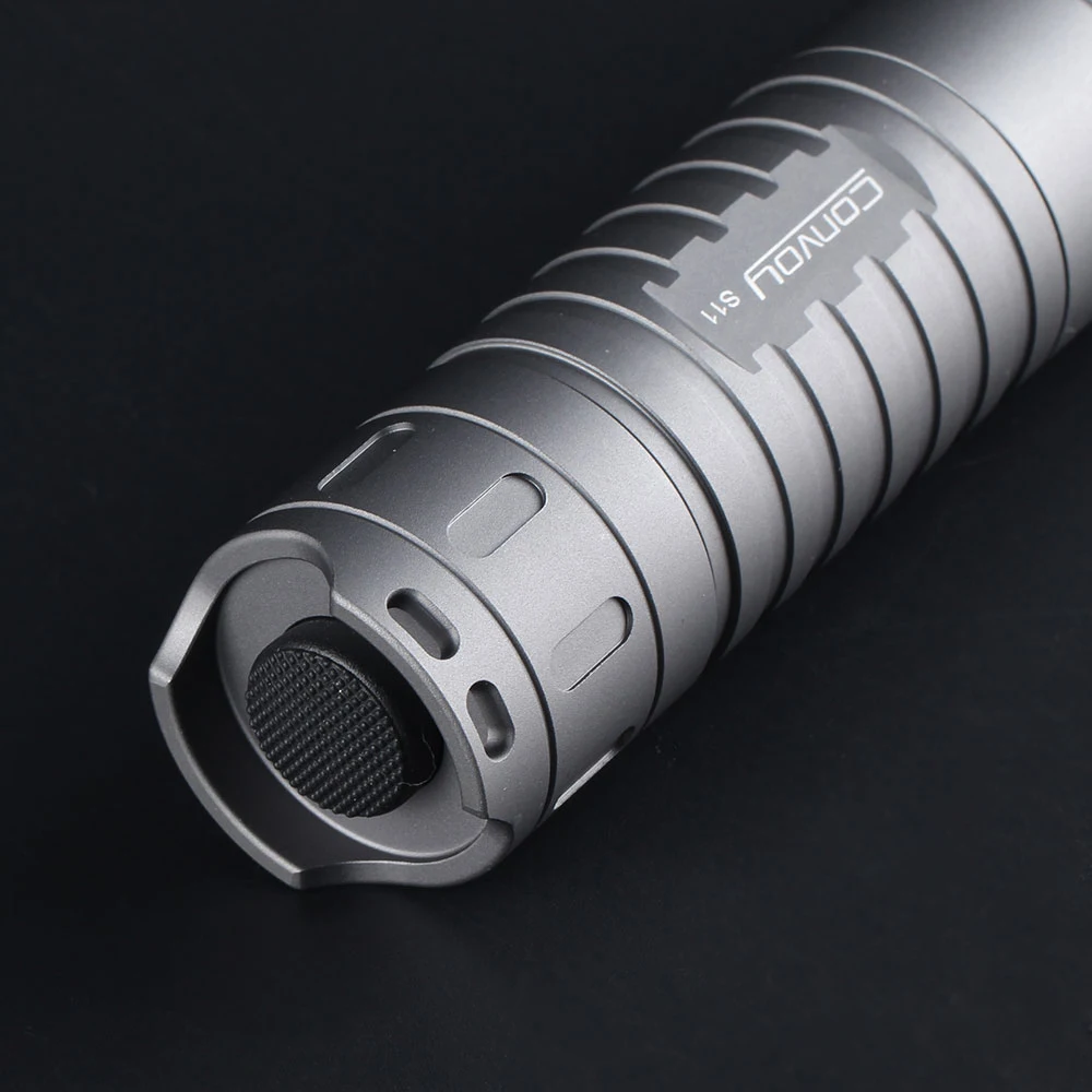 S11 имеет 4 простых режима переключения, что очень подходит для обычных пользователей. Режимы: 0.1%-3%-30%-100% Максимальная выходная мощность составляет 6000ма. Самое большое преимущество заключается в том, что частота не может быть видна в любом режиме, и есть управление температурой. Он может контролировать температуру фонарика не более 55 градусов Цельсия, Если температура фонарика ниже 55 градусов Цельсия, он будет выводить полный ток. Если он выше 55 градусов Цельсия, он будет постоянно регулировать ток, чтобы фонарик не перегревался.