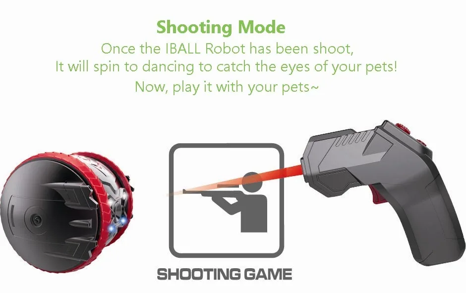 Он может следовать за мини-мячом, можно танцевать, снимать в качестве цели, чтобы поймать глаза милых домашних животных.