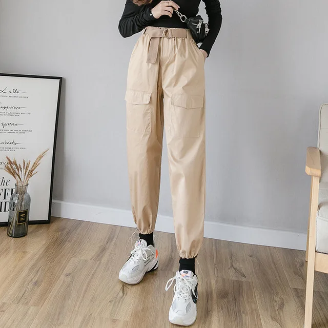 Женские брюки-карго в Военном Стиле с высокой талией, шаровары для бега, камуфляжные уличные брюки-Капри в стиле панк, черные, армейские, зеленые, черные, хаки