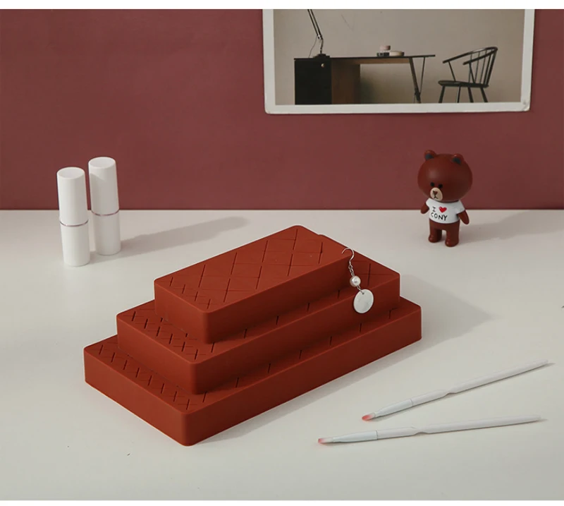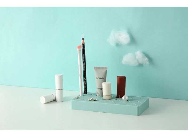Силиконовая стойка для хранения помады, косметическая коробка для хранения, многофункциональная инновационная витрина, держатель для макияжа, Домашний Органайзер Описание: 1. Мульти сетки, стильные, элегантные, красивые и многофункциональные. 2. Экономия пространства. Храните ваши любимые активы на своем месте. 3. Подходит для хранения помады, карандаша для бровей, кистей для макияжа, туши и т. д. 4. Изготовлен из силикона и АБС-пластика, идеальный органайзер для косметики и ювелирных изделий. Технические характеристики: Материал: силикон + АБС Рисунок: однотонный Особенности: мульти сетки Цвет: красный, синий, розовый, серый Размер (прибл.): S Размеры 13,5X6,5X2,5 см 8 губных сеток + 4 карандаша для бровей