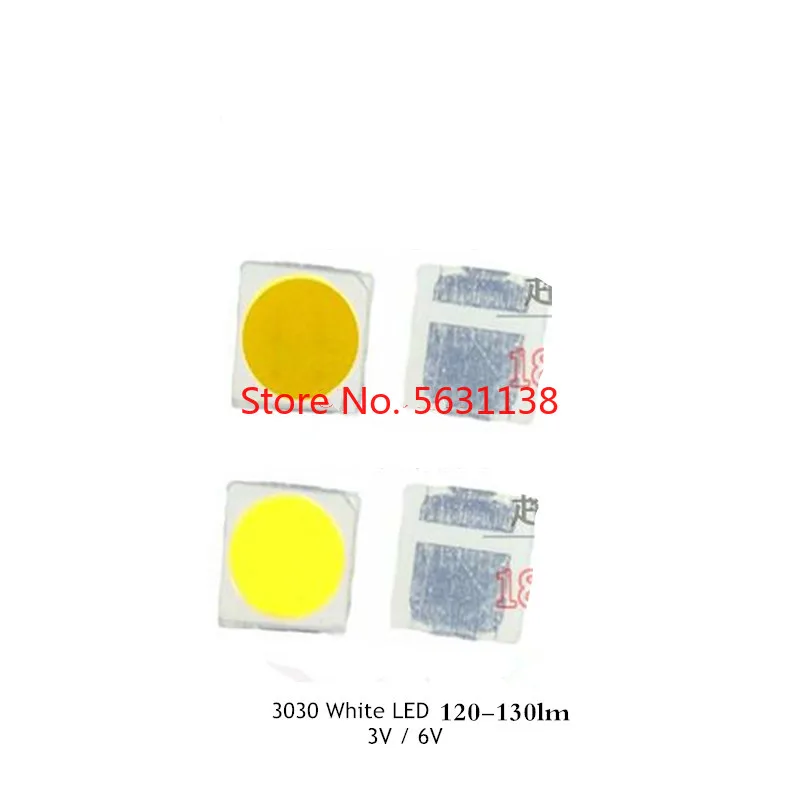 Номер детали: 3030 белый светодиод Цвет:Настоящий белый (6000-7000k) Напряжение: 3,0-3,2 v • Сила тока: 300mA Размер: 3,0*3,0 мм Угол излучения: 120 градусов Упаковка: 100 шт. в катушке Объектив Цвет: желтый