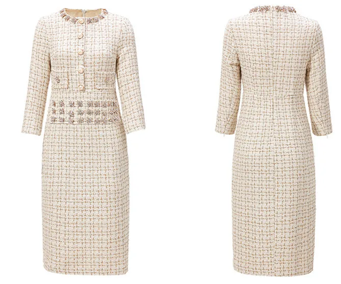 Роскошное подиумное осенне-зимнее твидовое платье для женщин