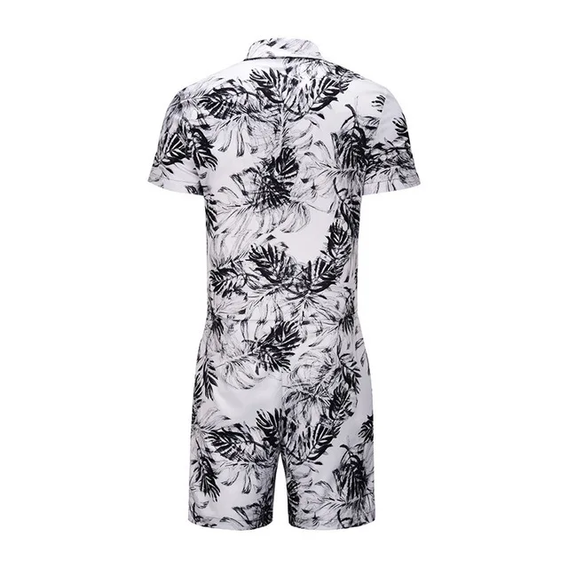 Мужские комбинезоны, летний винтажный комбинезон с принтом, комбинезон для отдыха, гавайский цельный комбинезон, облегающий комплект, короткая одежда