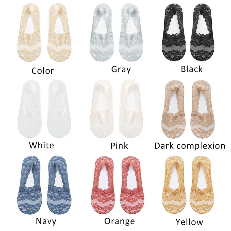 Особенности: 1 пара модных женских летних носков; кружевные короткие носки в цветочек; незаметный носок; носки по щиколотку