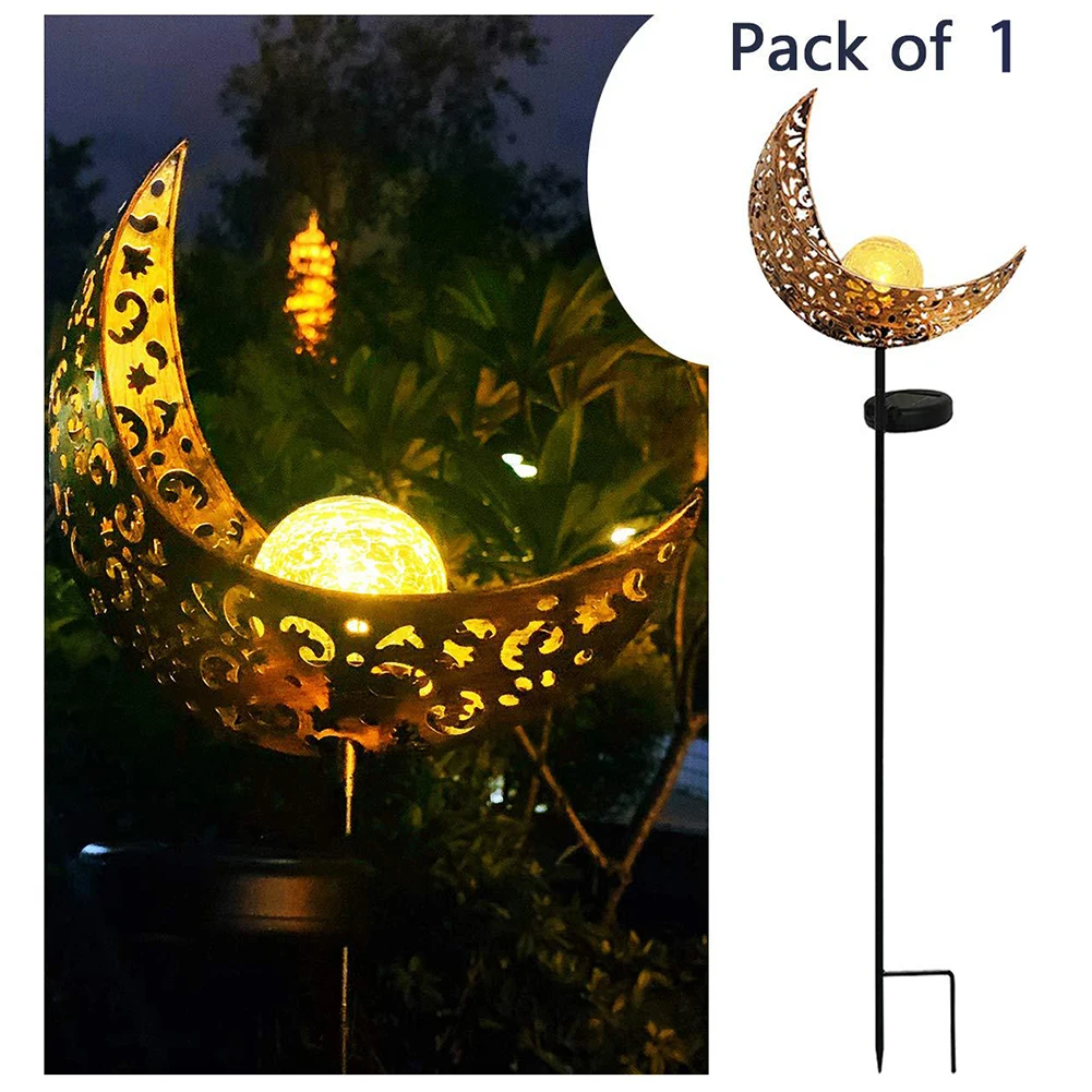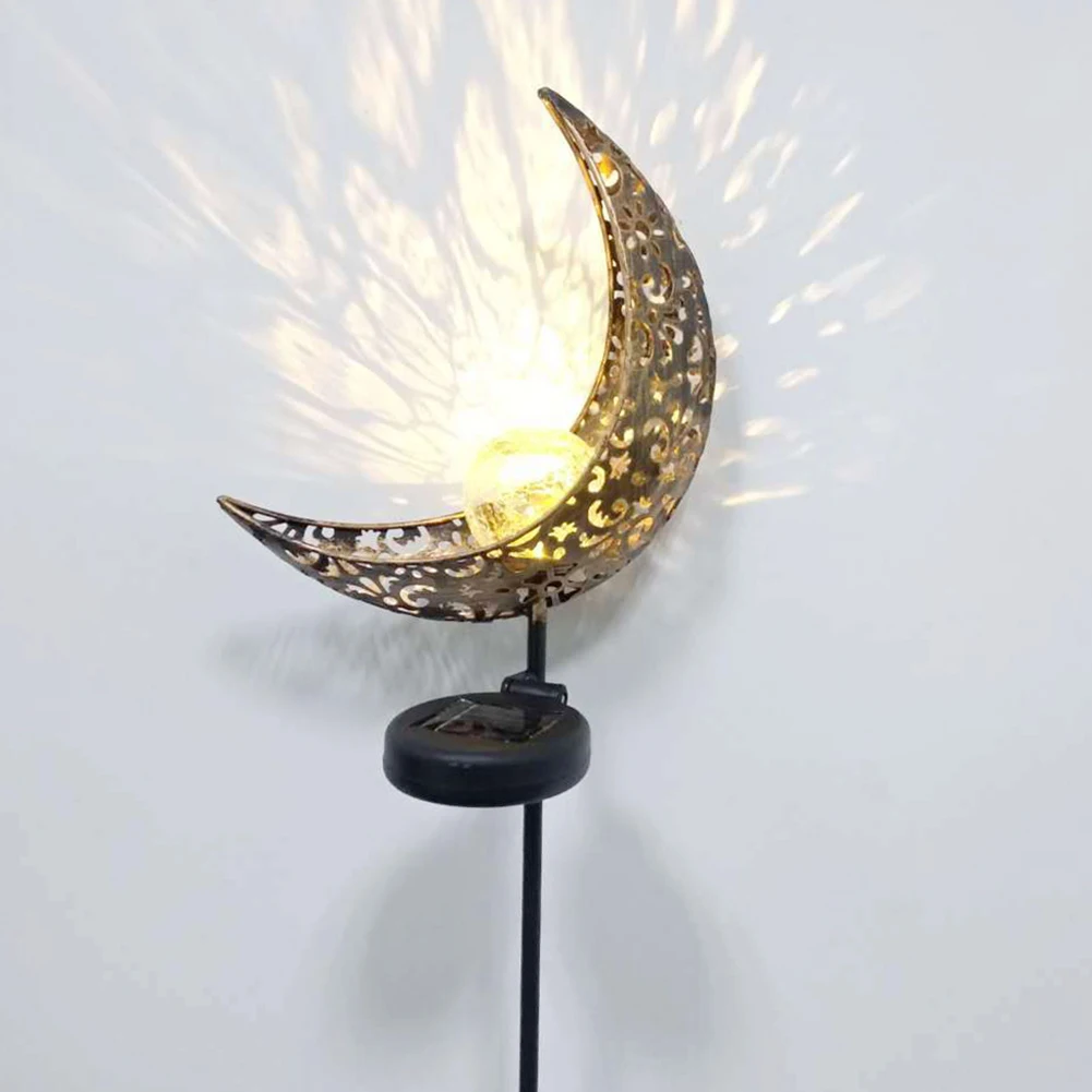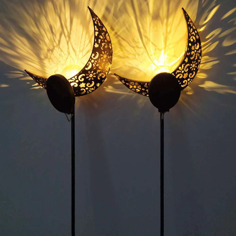 Garden Solar Lights Pathway Outdoor Hollow-out Moon Stake Metal Lights Waterproof Warm White Led Romantic Decoration Lawn Patio