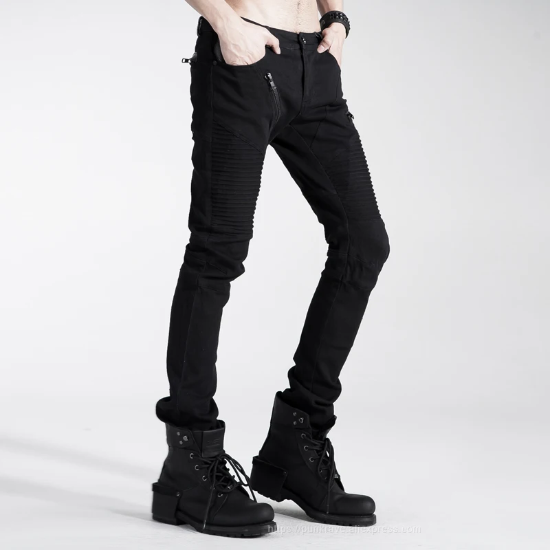Панковские модные байкерские зауженные джинсовые брюки готические Повседневные Классические черные повседневные красивые мужские длинные брюки Панк RAVE K-154