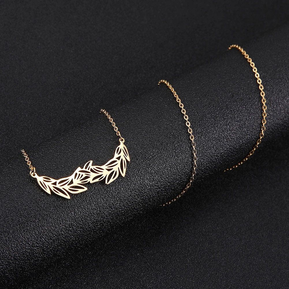 Olive Branch Plant Leaves Pendant Necklace for Woman