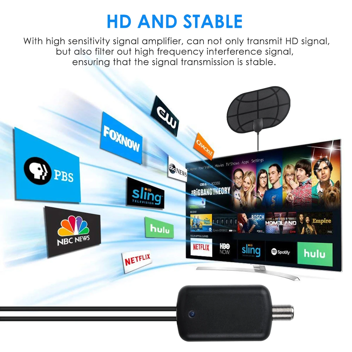 Супер тонкая внутренняя HD ТВ антенна: Наша Супер тонкая антенна специально разработана для приема цифровых ТВ-передач по воздуху (OTA) со всех ваших местных телевизионных станций. Так что никогда не платите очень дорогие кабельные или спутниковые сборы снова и получите все ваши местные каналы кристально чистого качества, абсолютно бесплатно.