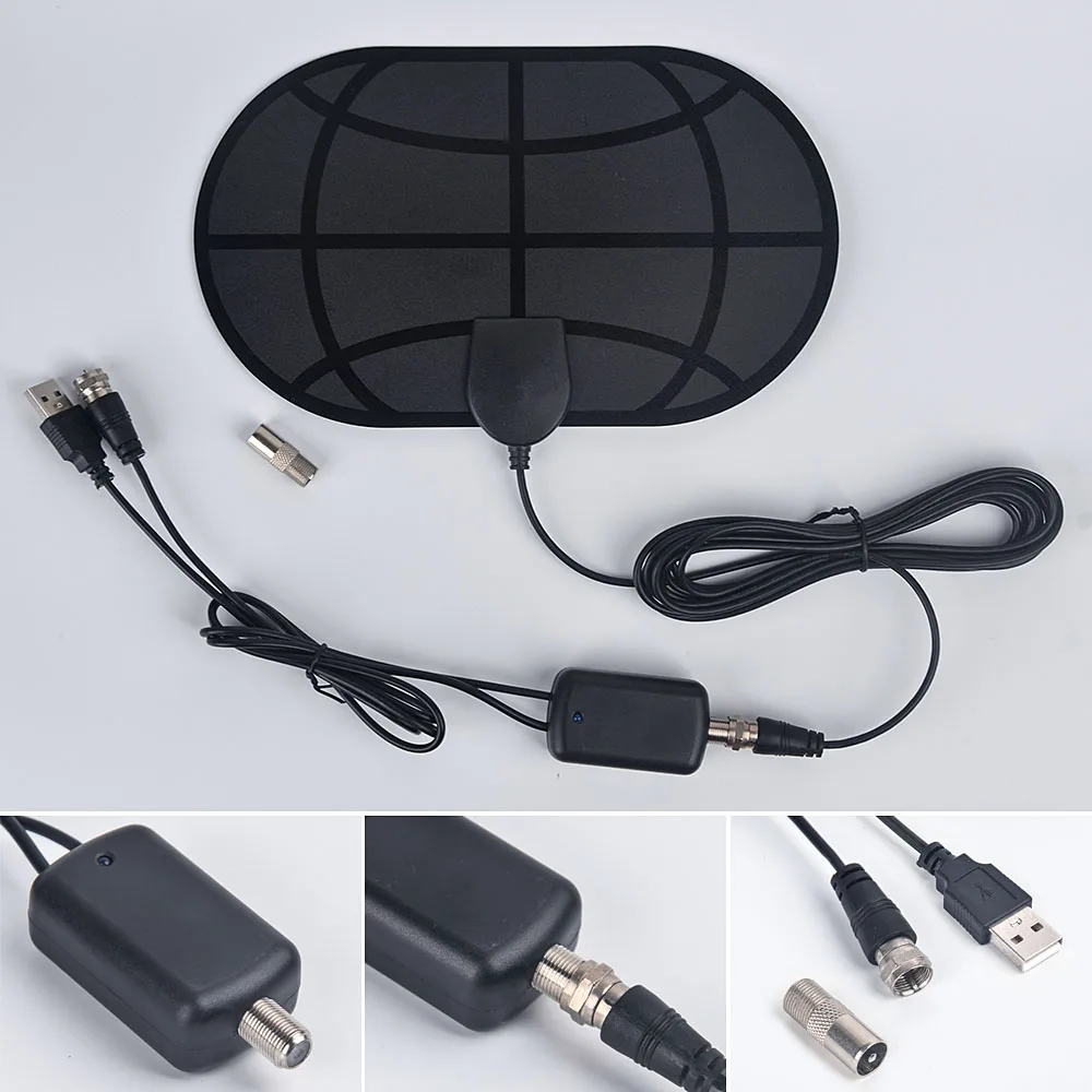 3) супер мягкий, ненавязчивый тонкий дизайн и мощные возможности приема делают эту антенну лучшим выбором для любого дома. Характеристики внутренней телевизионной антенны: Частотный диапазон: 47-230 МГц, 470-862mhzreceing диапазон: FM/VHF/UHFGain: 28dBOutput уровень: 100 dbμmpedance: 75 figure Уровень шума: ≤ 3 дБ