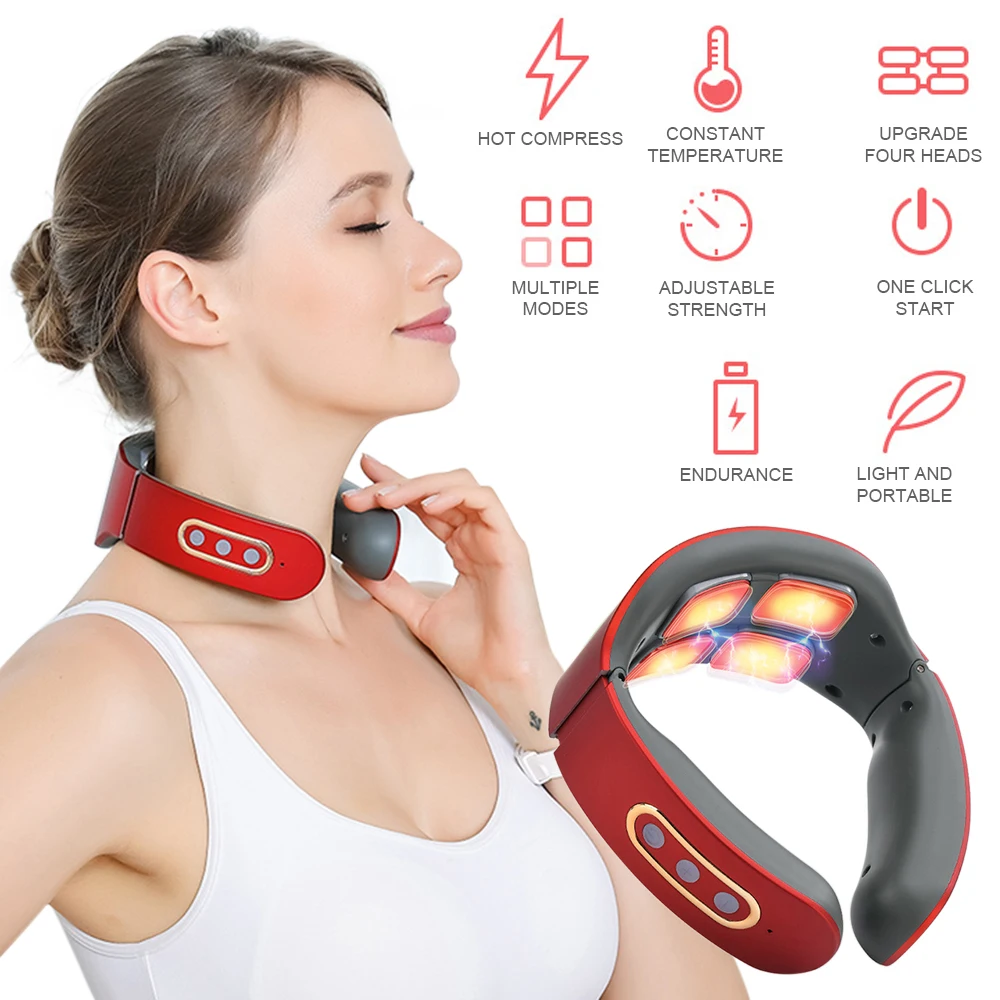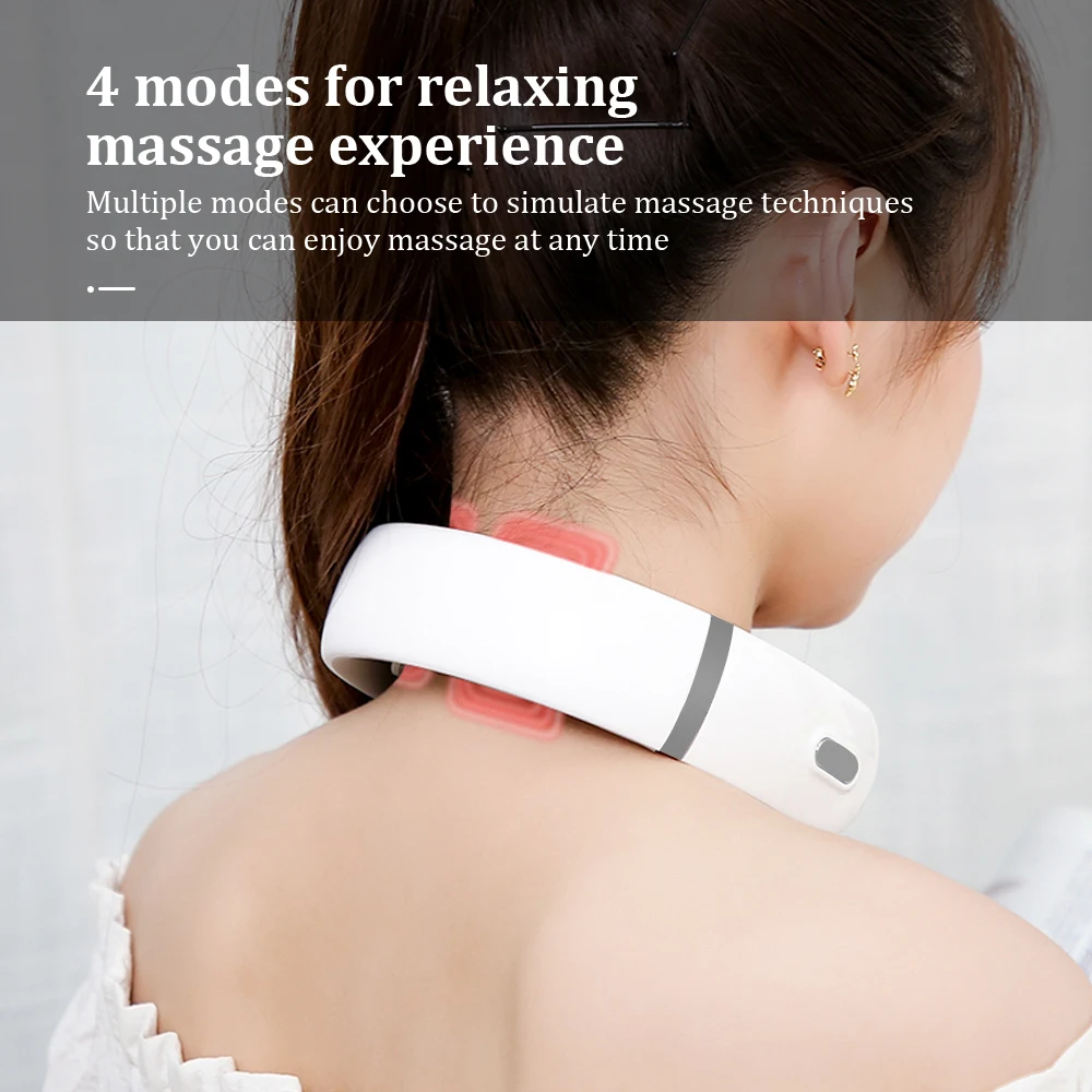 Перезаряжаемый умный 4D импульсный массажер для шеи, облегчающий боль в шее, электрическое оборудование для массажа шеи с 3 режимами и 15 скоростями
