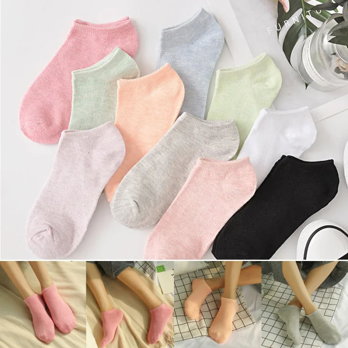 Женские носки-тапочки 10 пар невидимые Нескользящие лоферы с подкладкой-лодочкой