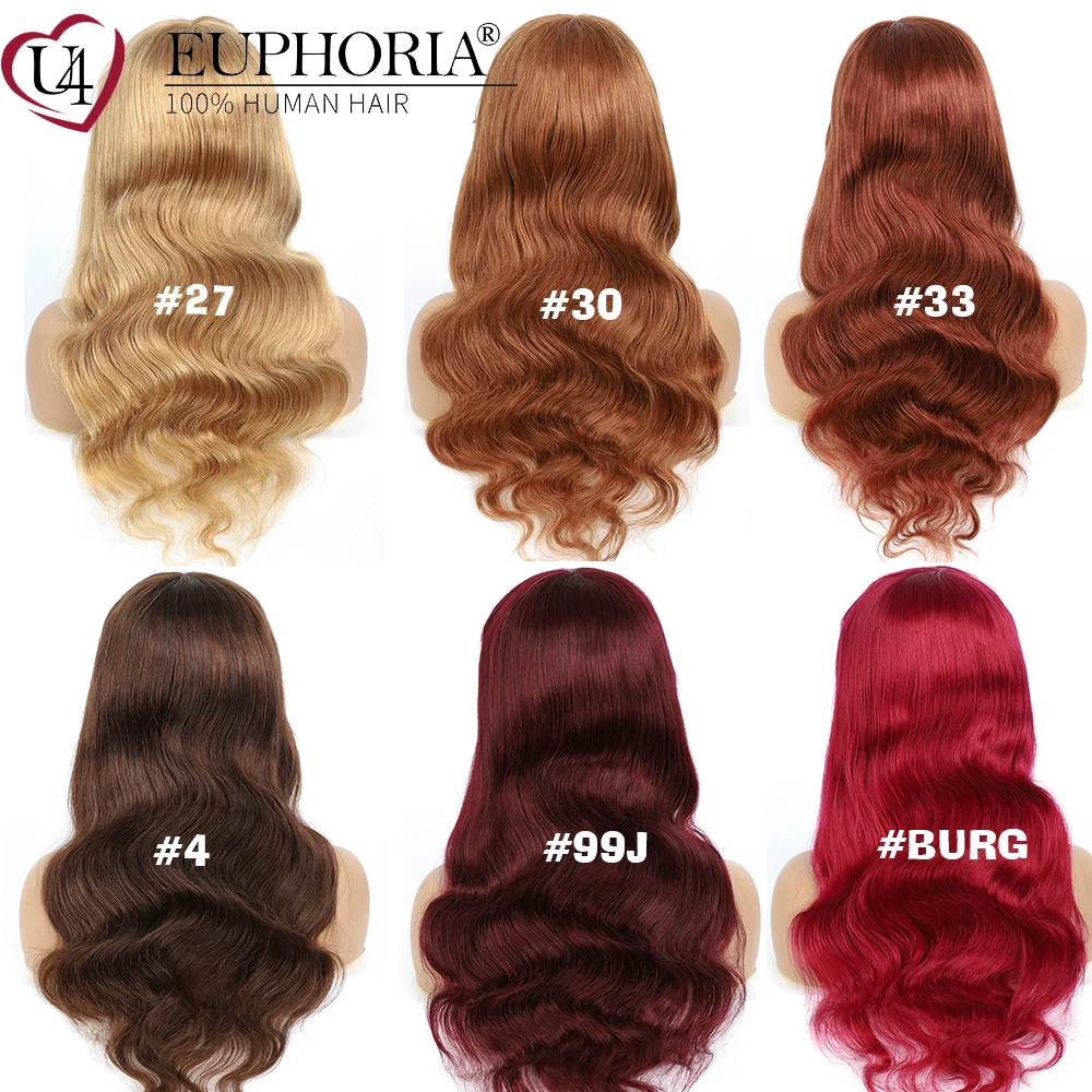 Блонд 27 полностью изготовленные парики бразильские объемные волнистые бергские красные 99J человеческие волосы парики с челкой Remy волосы волна парики 12-28InEUPHORIA