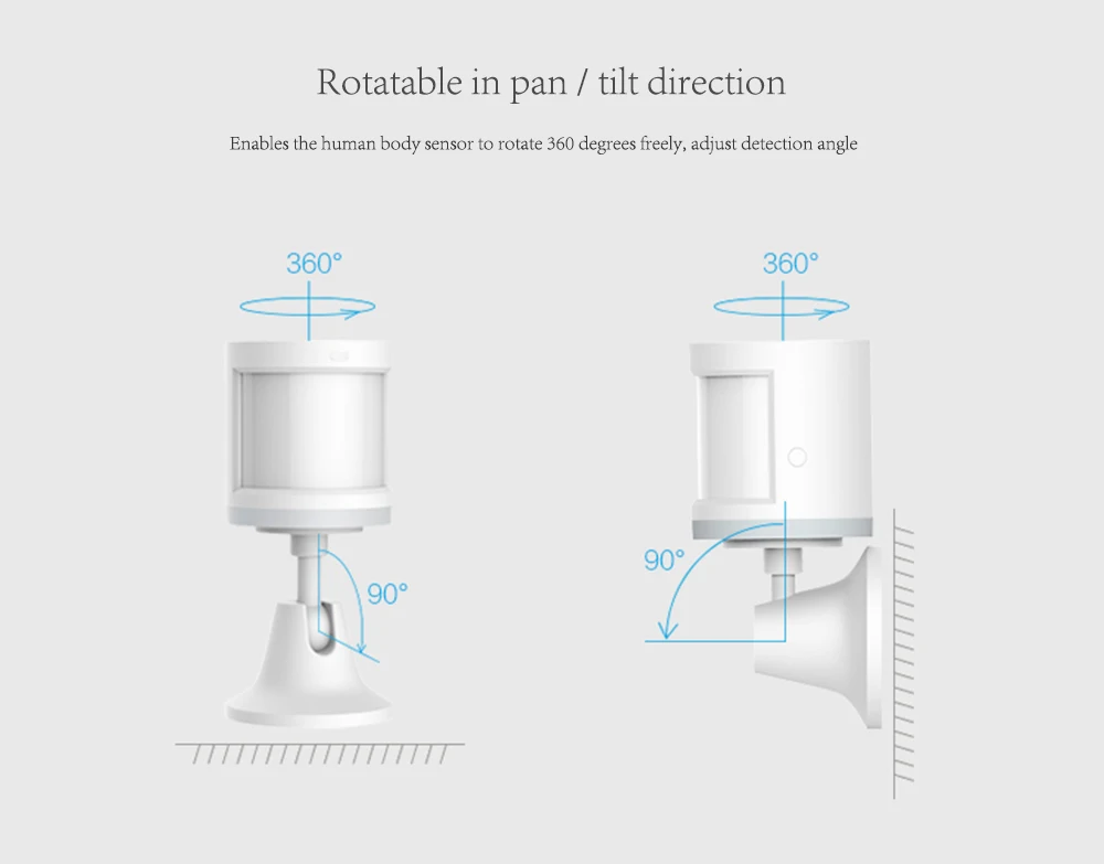 ● Позволяет датчику человеческого тела свободно вращаться на 360 градусов, регулировать угол обнаружения ● Материал ABS, прочный и экологически чистый, с хорошим ощущением руки ● С 3M клейкая лента, просты в установке в любом месте ● Подходит для датчика человека Aqara и человеческого датчика mijia Посылка: 1 датчик человека