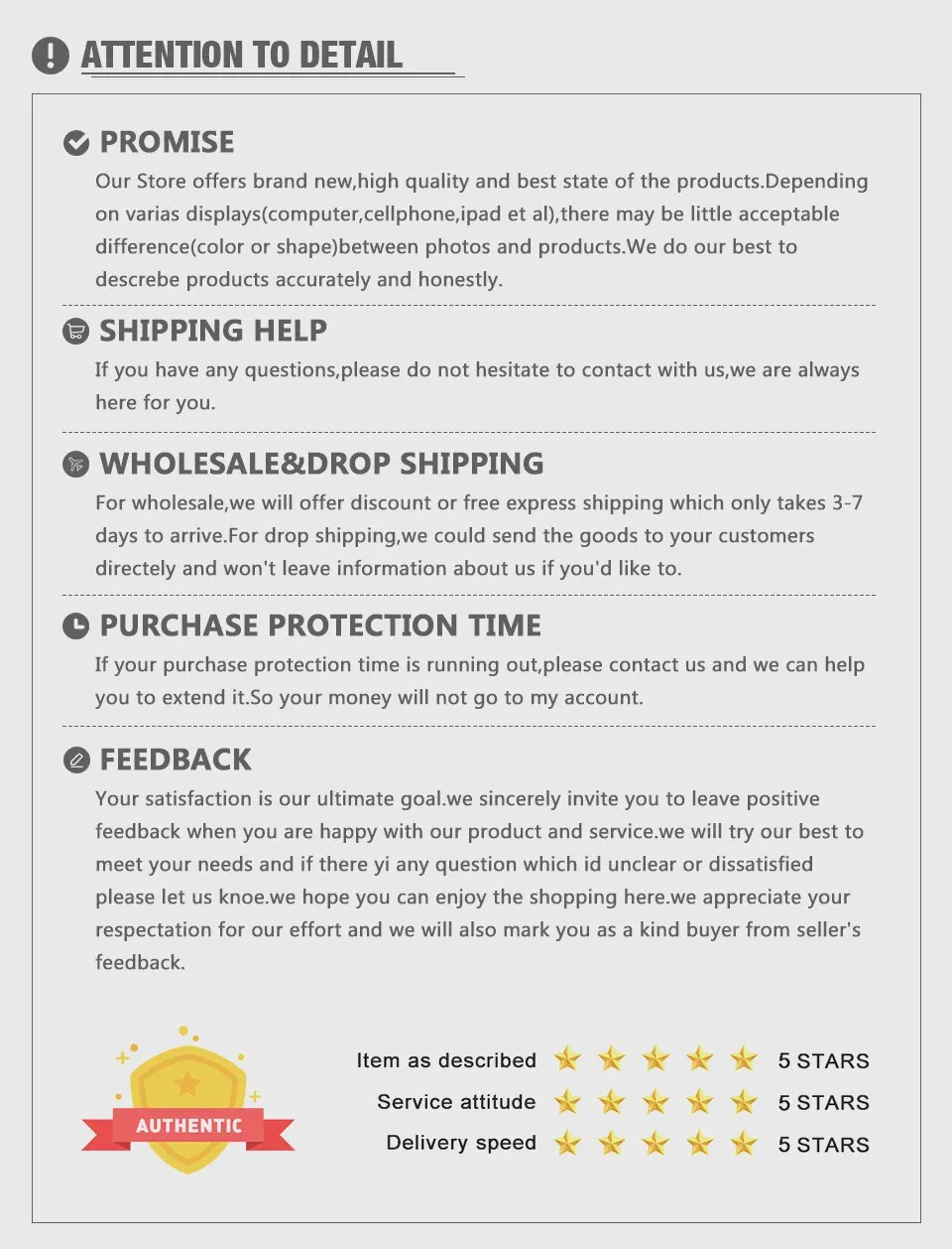 Хорошие новости: Новые поступления будут подготовлены для наших подписчиков с дополнительными 1%-2% эксклюзивными скидками. Любые Бесплатные действия или действия в зоне фанатов, мы сообщим нашим поклонникам и последователям в наш фан-клуб или по электронной почте. Мы обещаем, что наш последователь получит лучшую цену и сервис.
