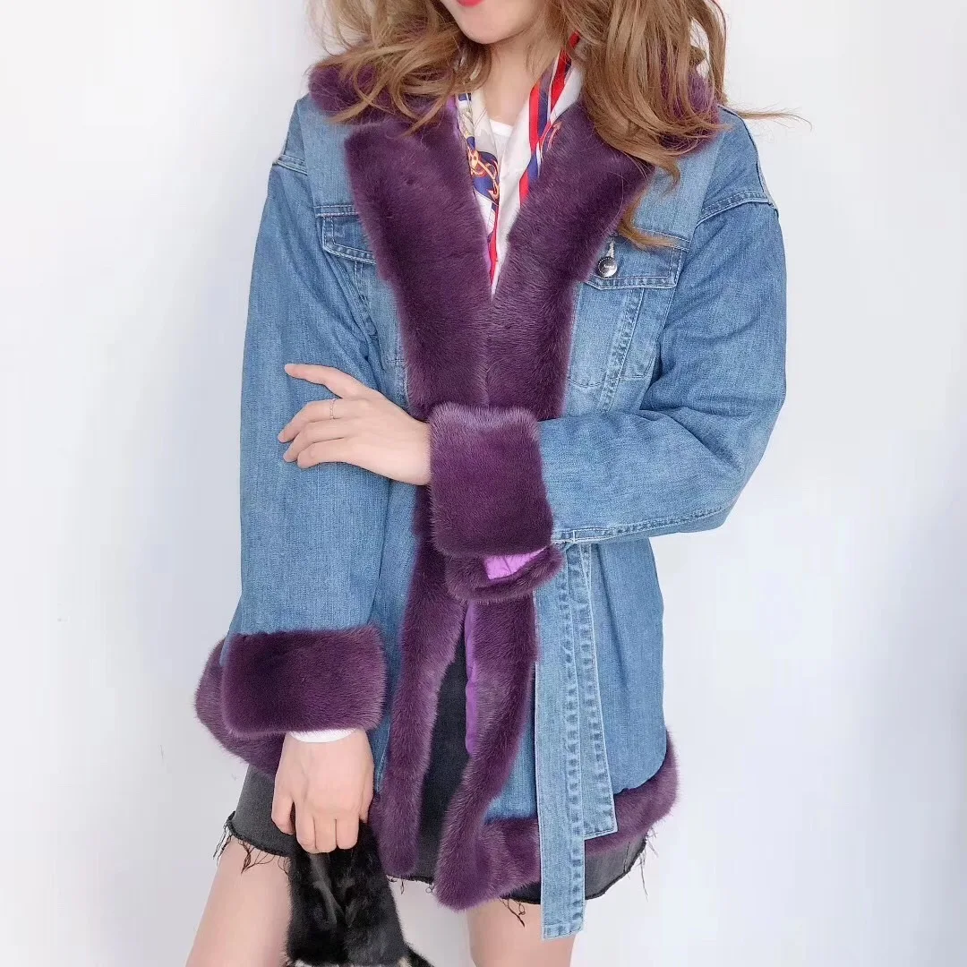 Материал: натуральный мех норки и высококачественная джинсовая ткань