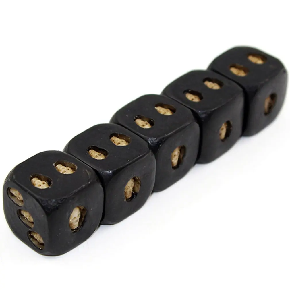 A gambling set of dark and demonic dice,skulls are etched into each face of these heavy black dice.