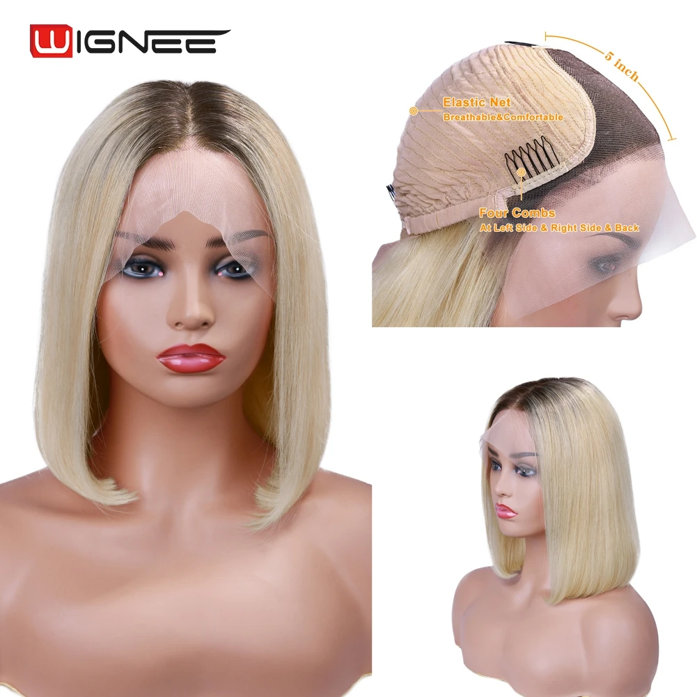 Wignee короткие прямые волосы на кружеве спереди Боб человеческий парик для черных/белых женщин Омбре 613 блонд/серые виргинские волосы швейцарские кружевные человеческие парики