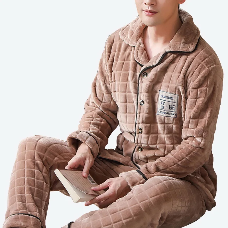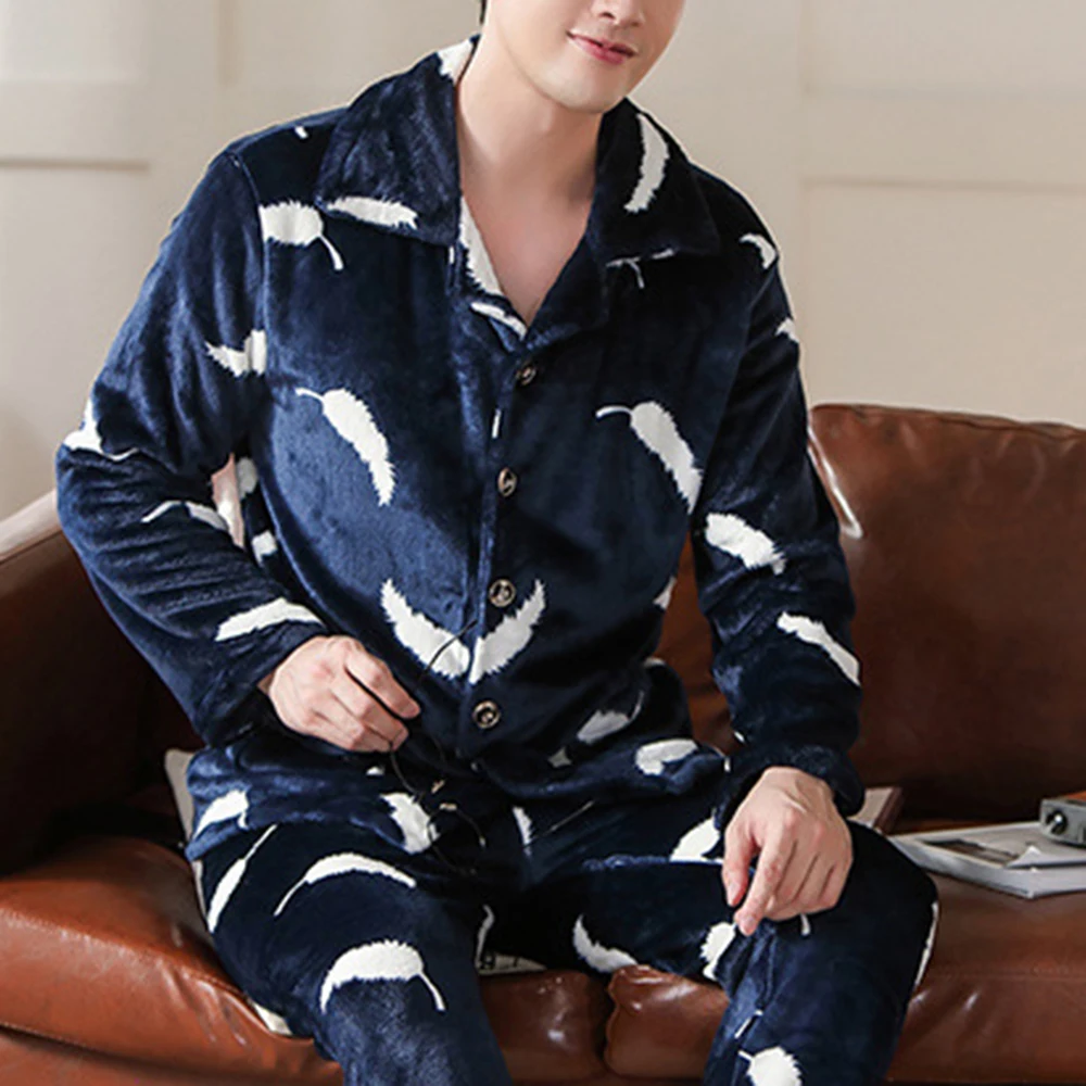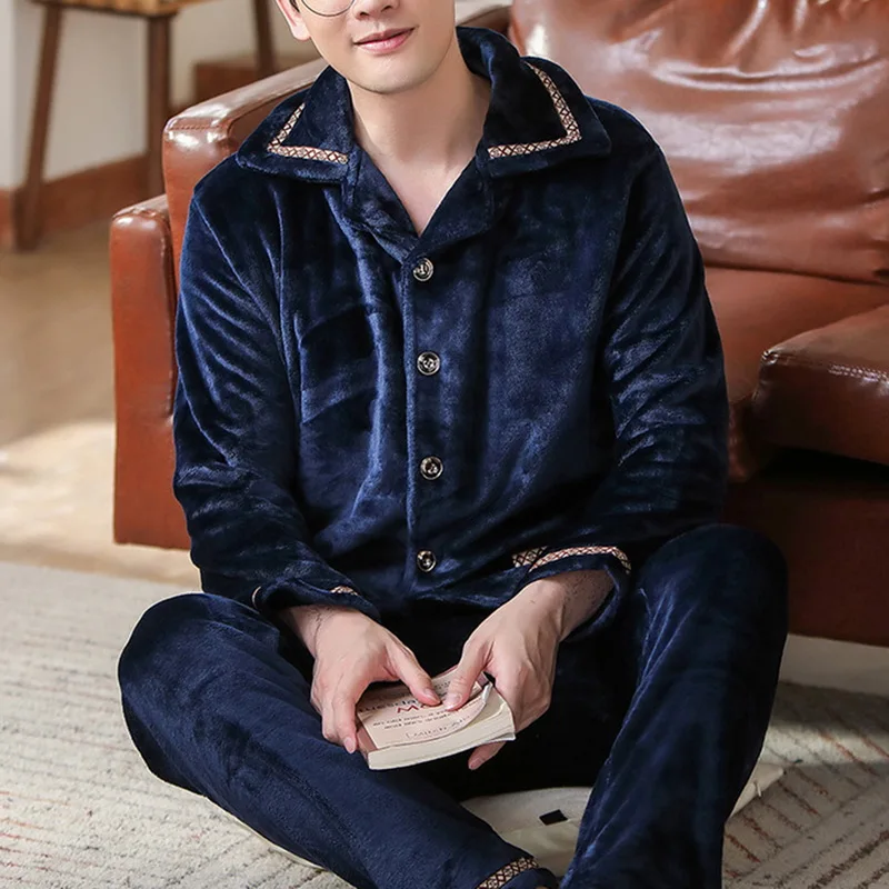 Особенности: мужские пижамы; сезон весна-осень; мужские бархатные пижамы с длинными рукавами; плотные фланелевые Мужские пижамные комплекты