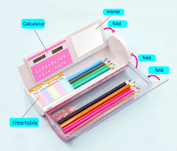 Наша коробка для карандашей цилиндрическая, больше аксессуаров с калькулятором, зеркалом, стираемой белой доской, schoole tabletime, красочной ручкой для доски, номером головоломки, электронными часами