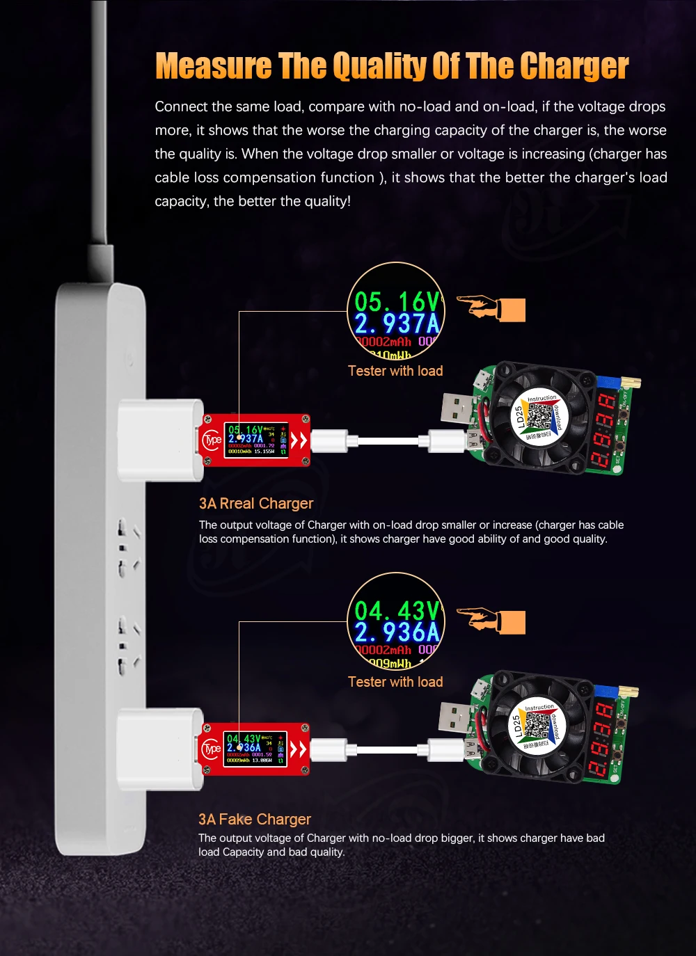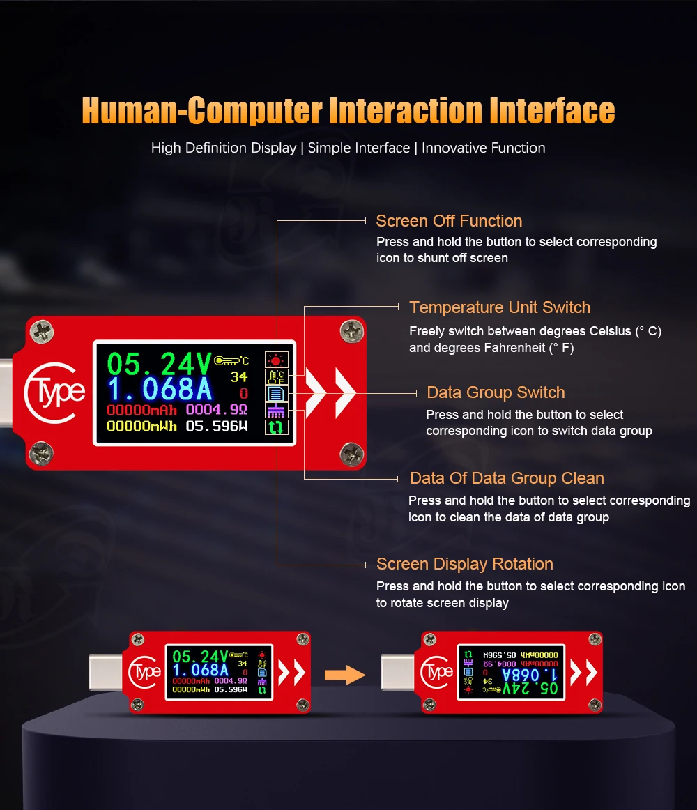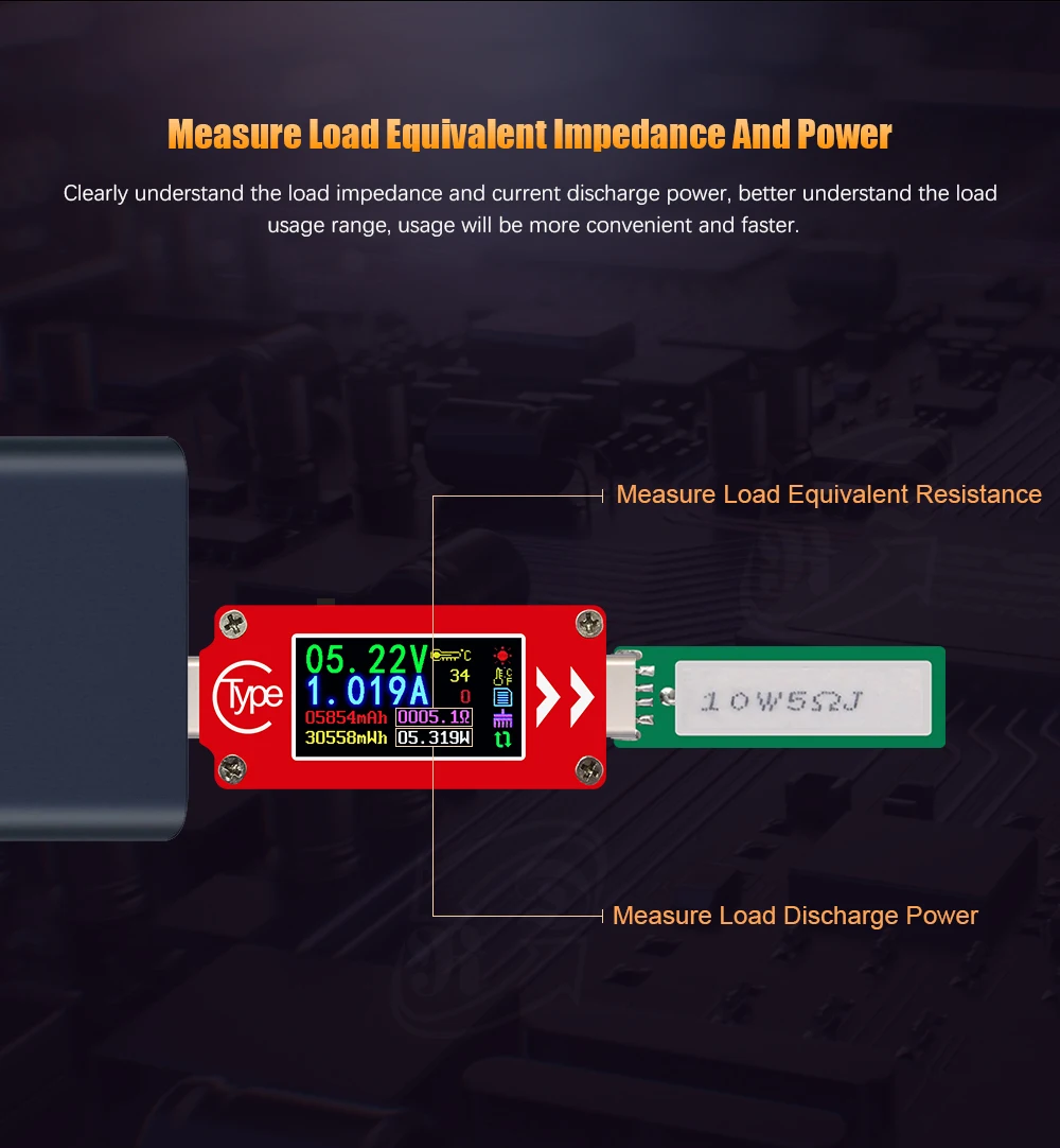 TC64 тип-c цветной ЖК-дисплей USB Вольтметр Амперметр измеритель напряжения мультиметр батарея PD Зарядка банк питания USB Тестер