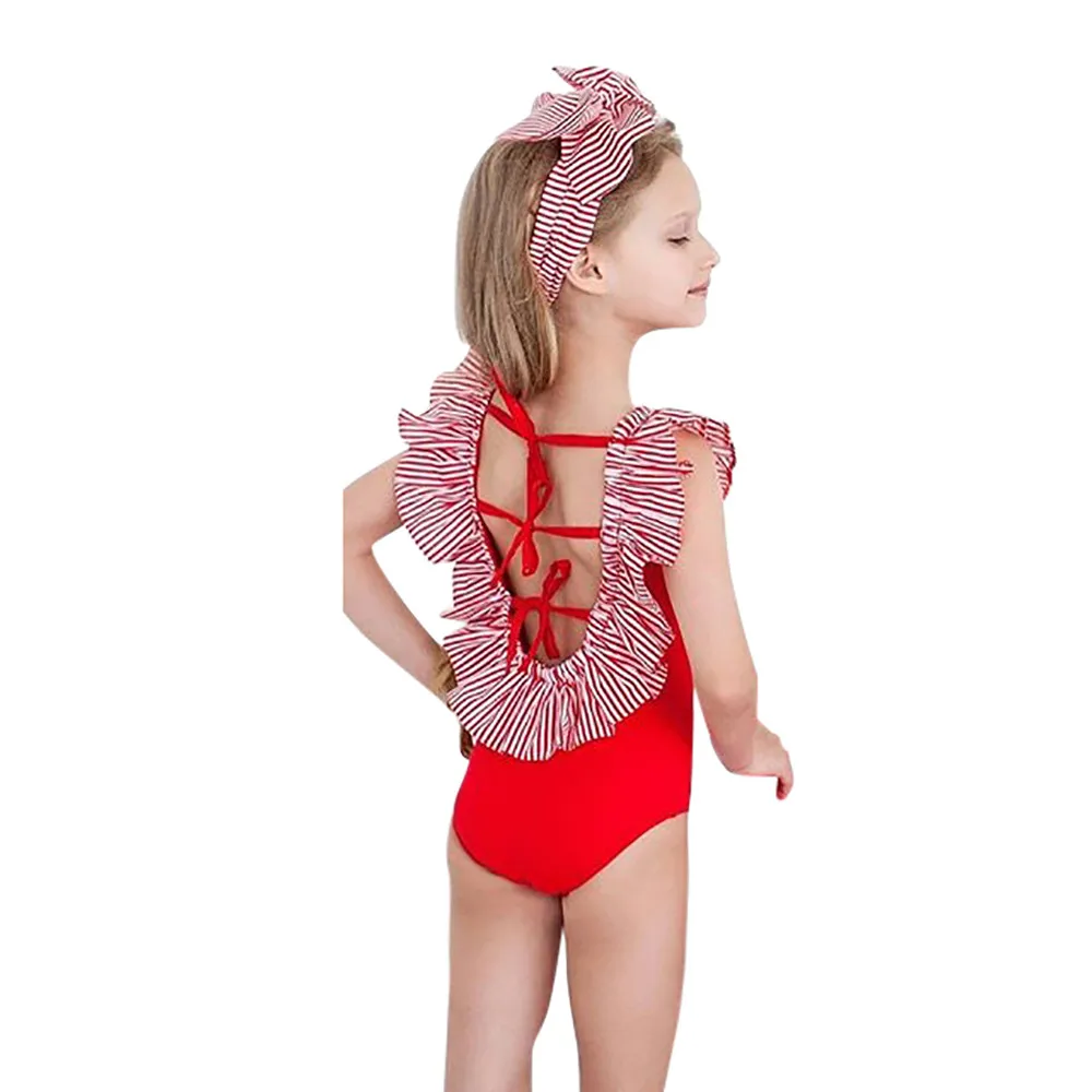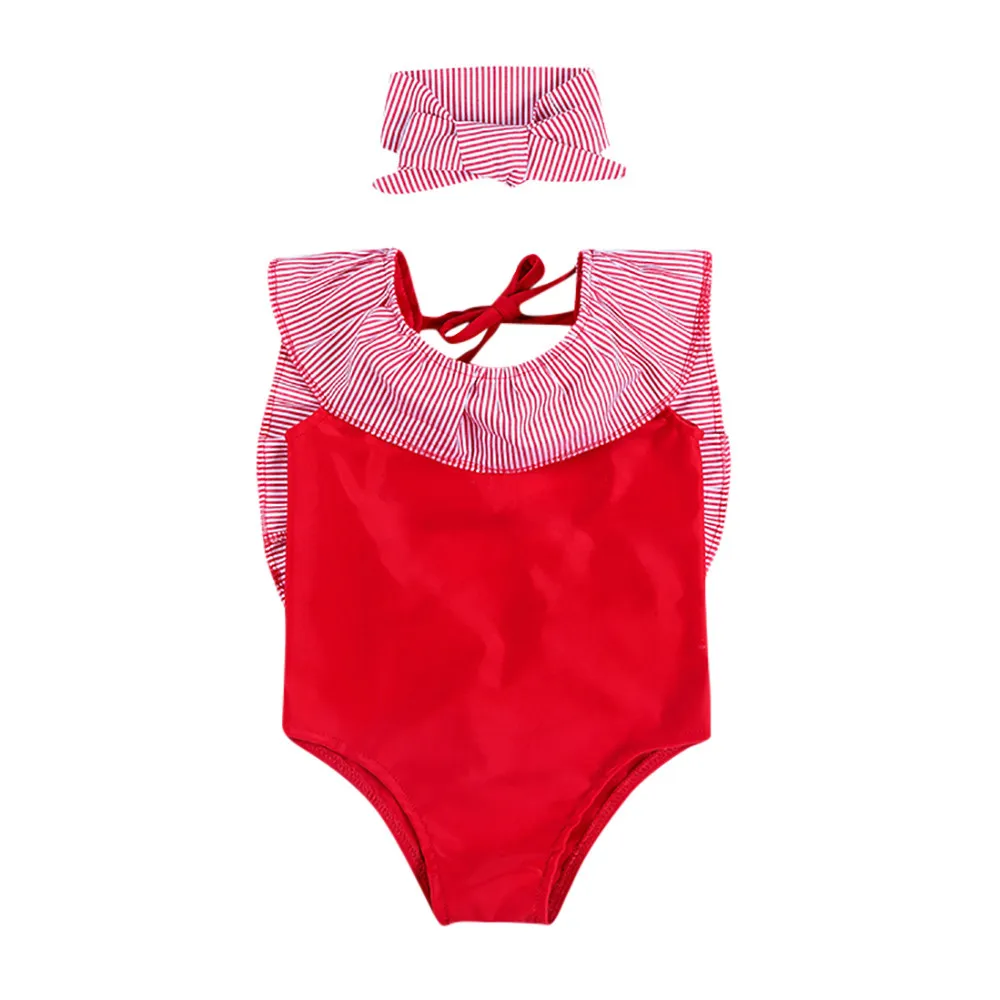 2. Повседневный стиль; Без рукавовS С принтом в полоску Купальник с бантом сзади для маленьких девочек, милый, милый и удобный для малышей Одежда для детей