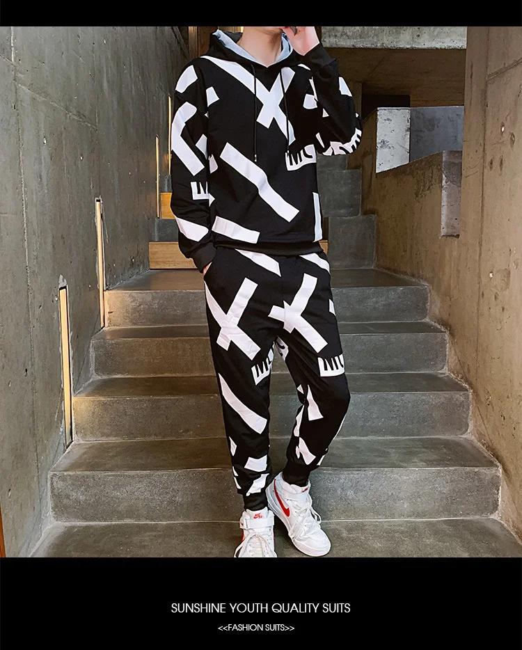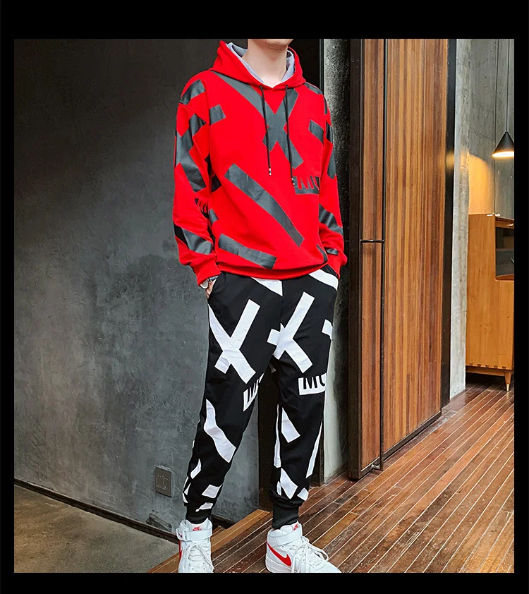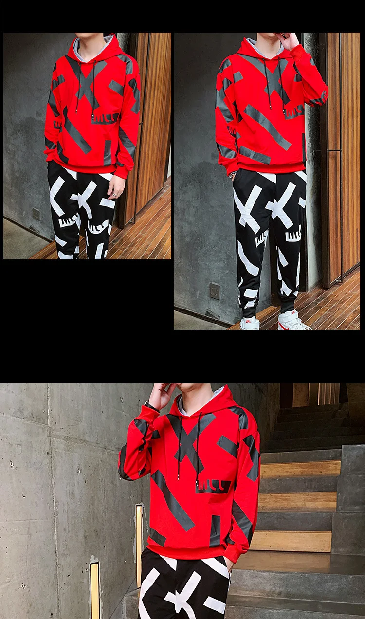 Мужской костюм с 3D-принтом волка толстовка капюшоном и штаны повседневный