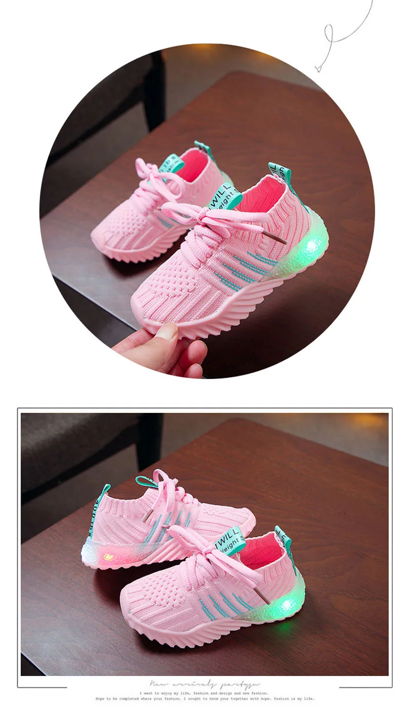 Детская спортивная обувь; Сезон весна; Светящаяся модная дышащая обувь для мальчиков; Сетчатая обувь для девочек; Нескользящие кроссовки; Легкая обувь для бега