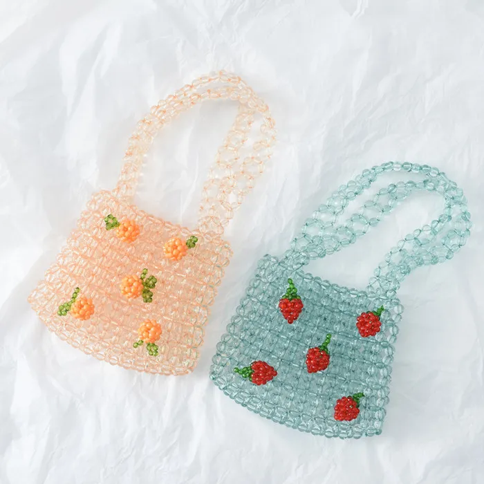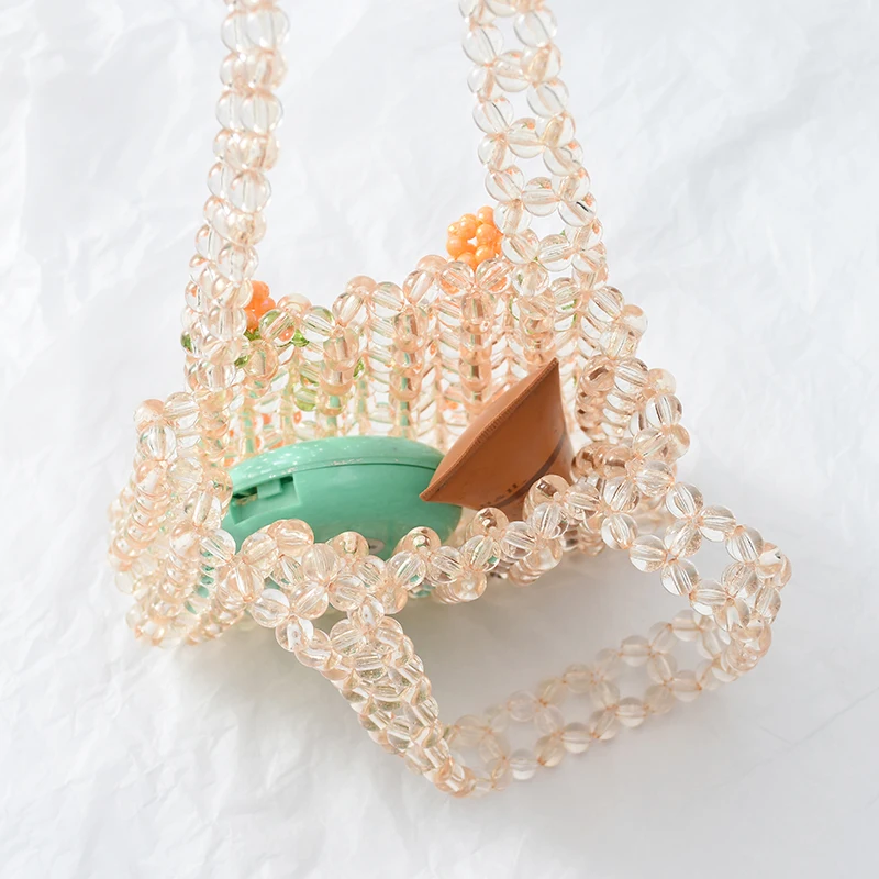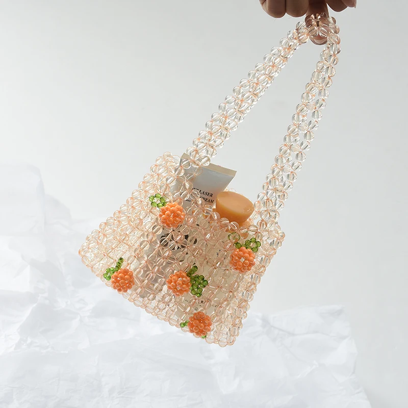 Товар: ретро сумка из оранжевой соды с прозрачными кристаллами, плетеный, с бусинами