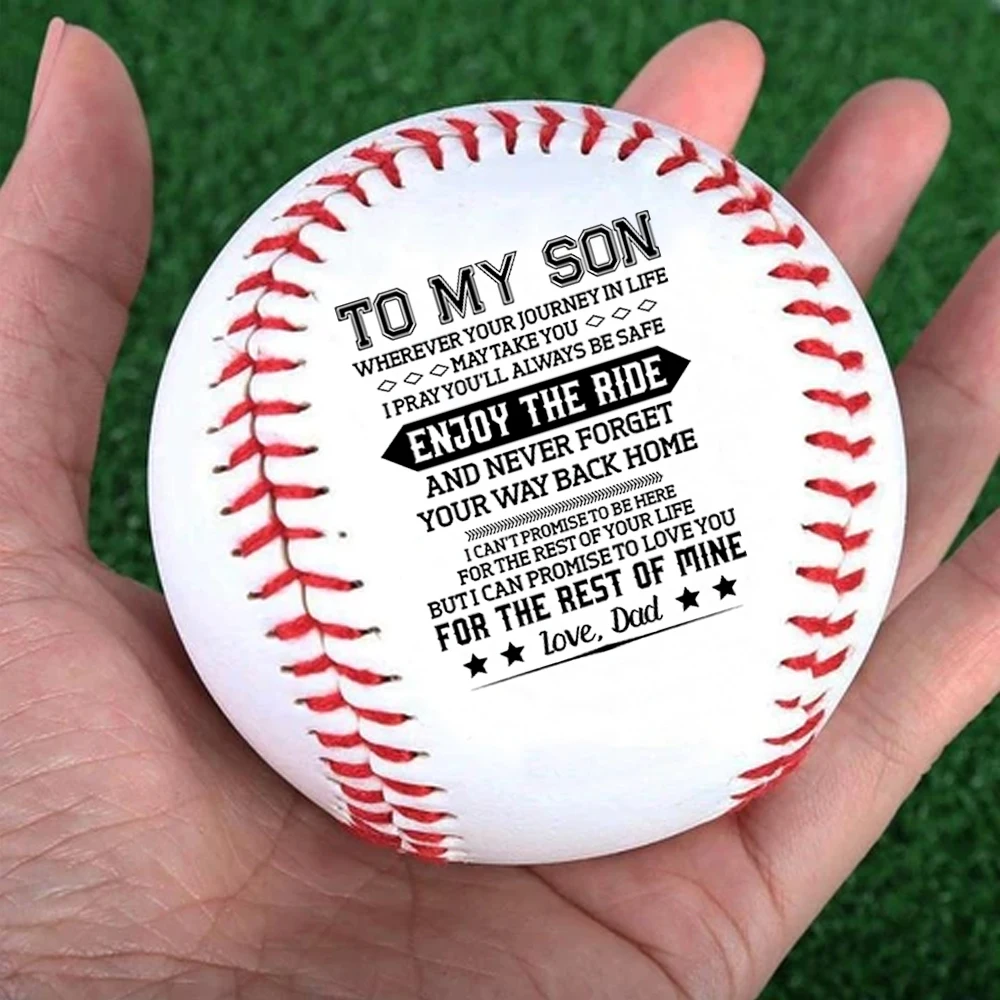 Вы ищете уникальный подарок для своего сына? Ваши поиски закончены! Этот бейсбольный мяч с принтом идеален! Подарок, который он будет ценить на всю жизнь! Это красивый бейсбольный мяч с напечатанным на мяче значимым сообщением, которое помогает ему длиться навсегда.