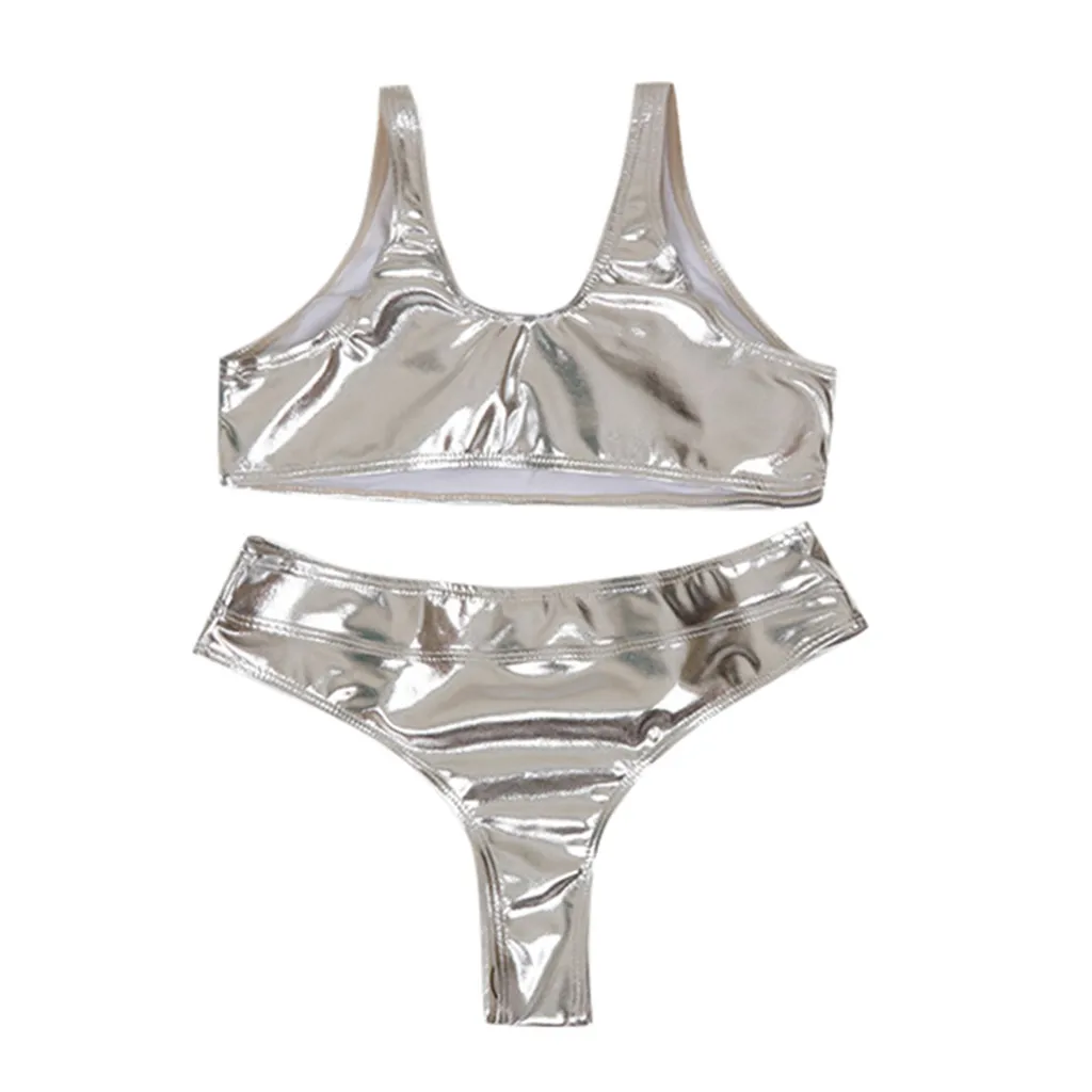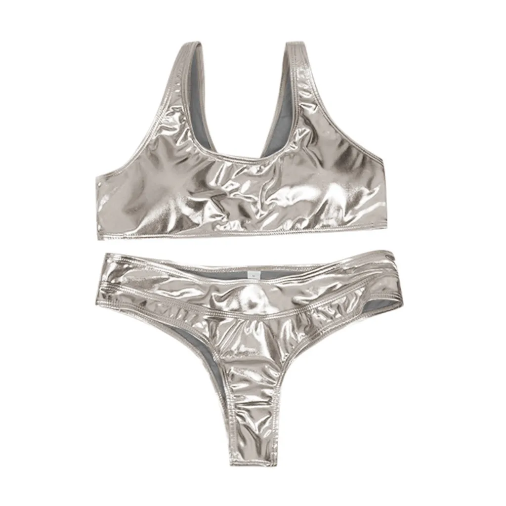 Женский Блестящий металлический купальник-бикини из двух частей, купальный костюм, комбинезон без рукавов