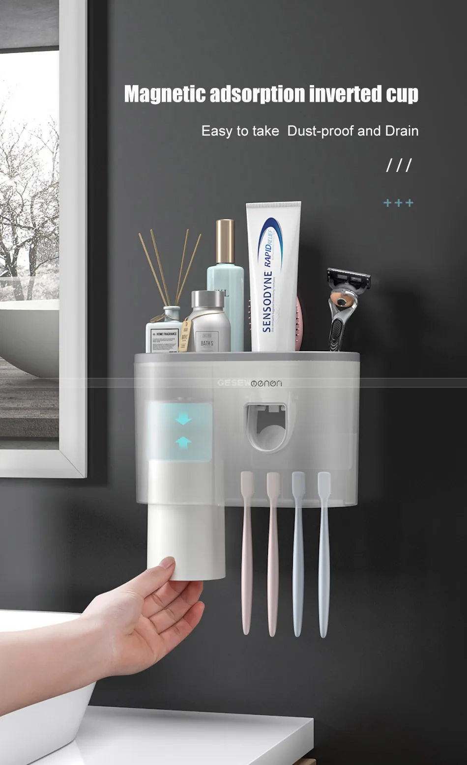 1. Магнитная подвесная чашка для полоскания рта, легко сливать, чистить и санитарно