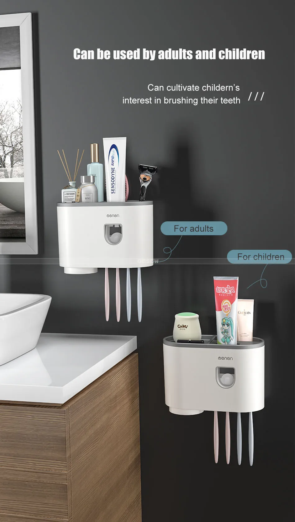 GESEW аксессуары для ванной комнаты Магнитная Адсорбция настенная подставка для зубных щеток Автоматический Дозатор зубной пасты набор для ванной комнаты