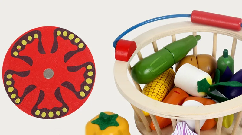 Детская деревянная эмульсионная Магнитная корзина для овощей и фруктов, игровые игрушки, детские игрушки, кухонные развивающие игрушки, набор еды