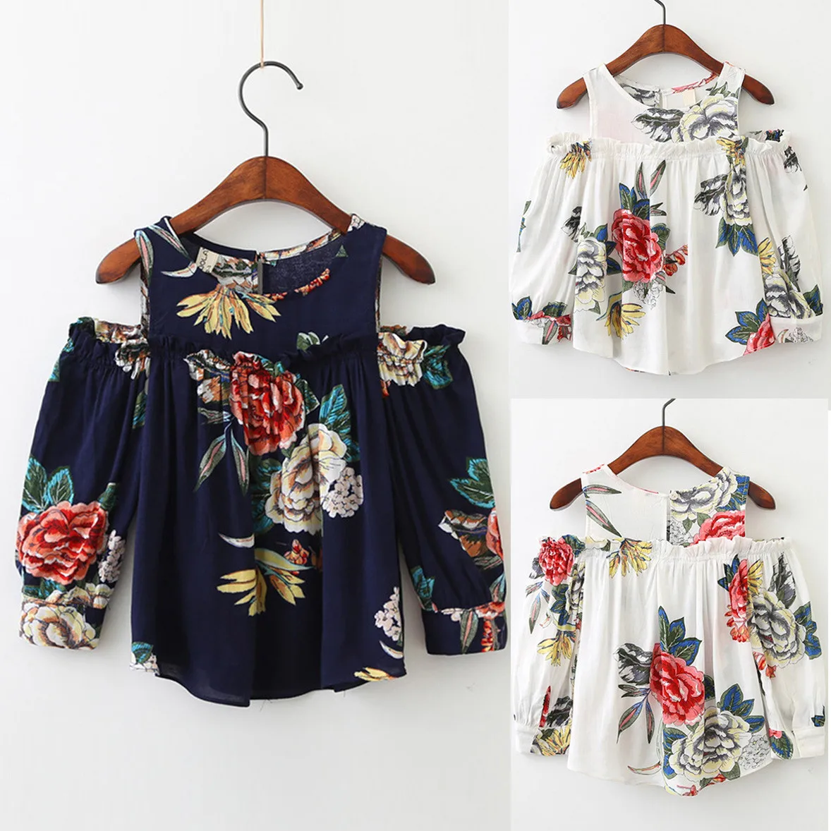 Teletuny/детская одежда для маленьких девочек, 2020 г. Футболка без бретелек с цветочным принтом топы, рубашка с длинными рукавами Топы для детей, От 2 до 7 лет