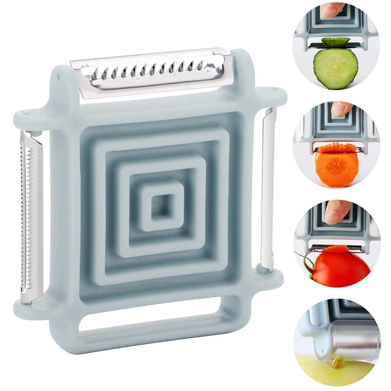 Многофункциональная Овощечистка может использоваться для пилинга и измельчения картофеля, моркови, сквоша и т. Д.; острые лезвия позволяют легче использовать и включают в себя прозрачный защитный чехол с откидной крышкой. Защищает пальцы от случайного повреждения