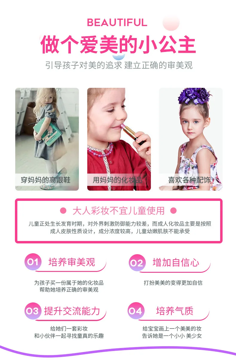 Натуральные ингредиенты, без консервантов, Свойства мягкой формулы, безопасная защита, защита кожи детей Ингредиенты продукта: извлечение натуральных ингредиентов Подходящий возраст: 3 года + Способ хранения: хранить в прохладном и сухом месте Срок годности: 3 года Посылка размеры: 40*4*28 см Список продуктов: Тени для век * 6, Лак для ногтей * 4, Щетка * 1, Наклейка * 1, Кисть для макияжа * 2, Кисть для румян * 2, Кисть для румян * 1, Глазурь для губ * 2, Блеск для губ * 6, Пилка для ногтей * 1, Машинки для стрижки ногтей * 1