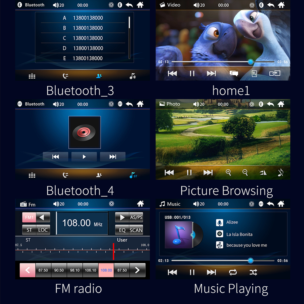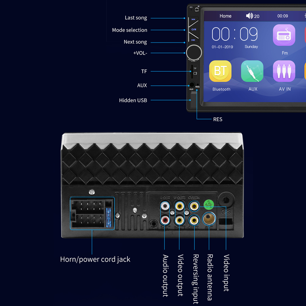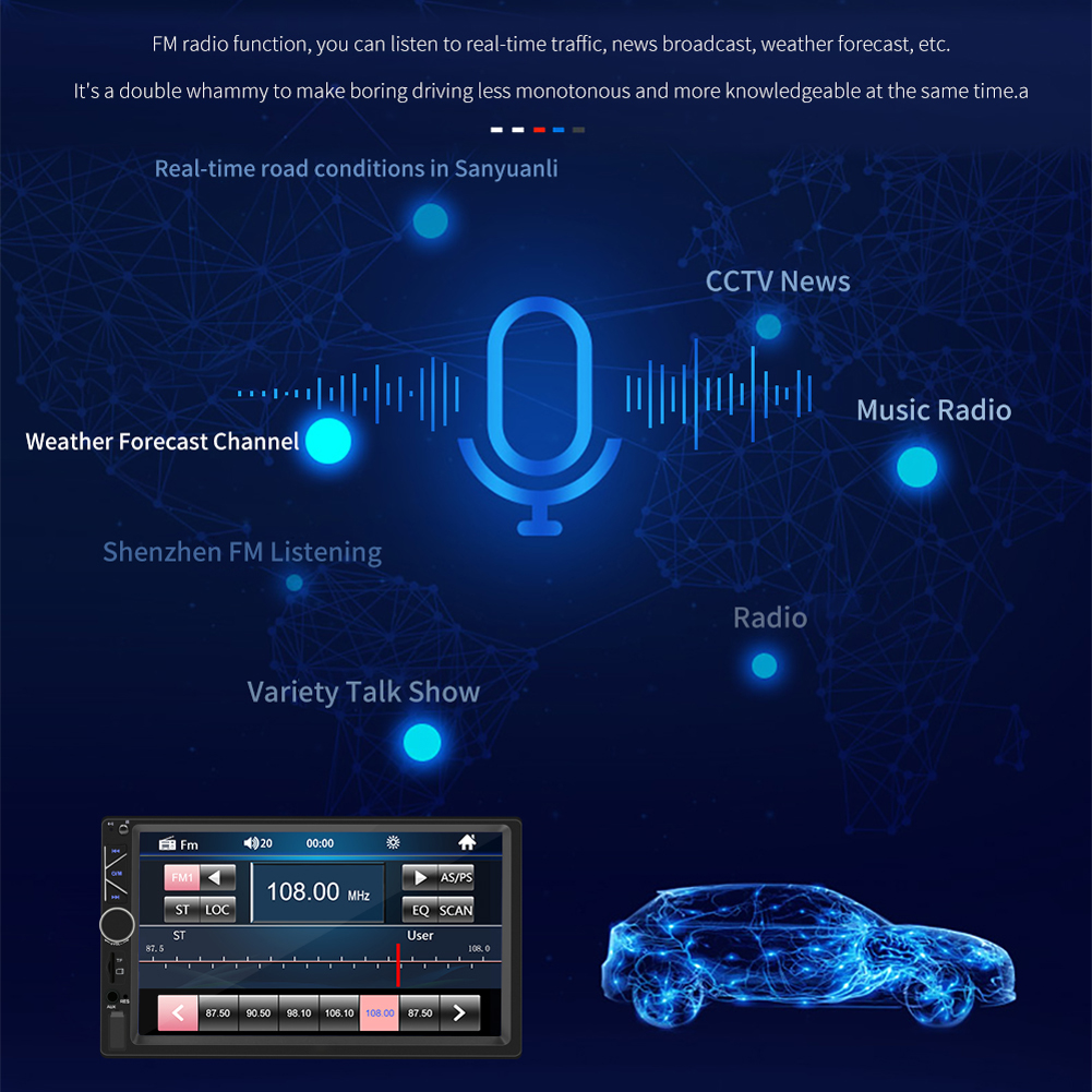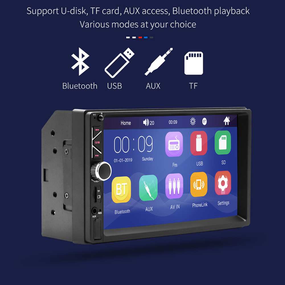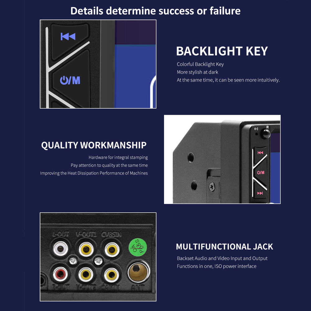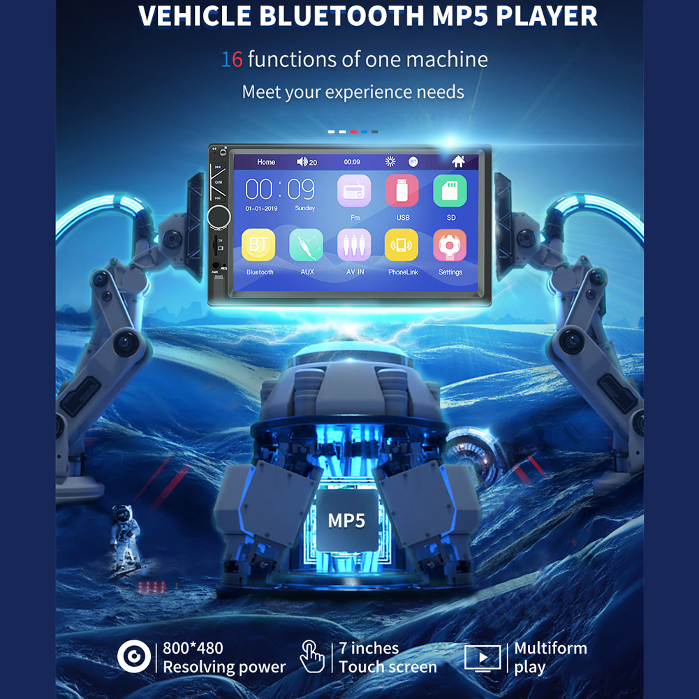 1. Эта Автомобильная магнитола MP5 плеер обладает функцией Мути, 7-дюймовая HD сенсорный экран и разрешение экрана 800X480, обеспечивает вам более четкое разрешение и большой дисплей.
